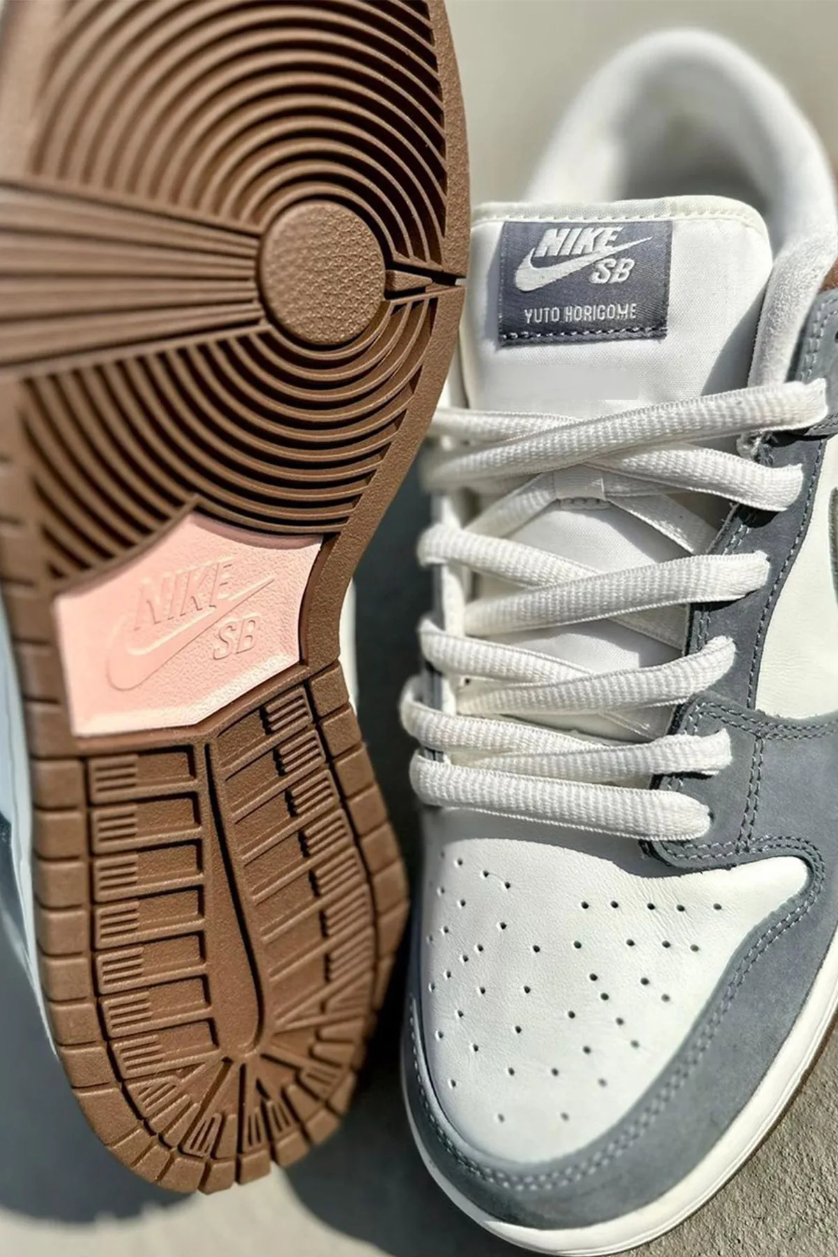 东京奥运金牌日本滑手堀米雄斗与 Nike SB 合作打造的联名 Dunk Low 鞋款近日率先亮相。 全鞋以深蓝、白、棕等色调构成皮革与绒面革材质鞋面,鞋跟贴片的一抹粉色亦有点缀效果,接着细节处能看到鞋舌标签下的 Yuto Horigome 字样和鞋跟护边、鞋垫处的交叉羽毛标志,最后以白色中底和棕色外底完善整体设计。 此鞋款目前尚未有确切发售资讯公开,有兴趣的读者不妨持续关注后续发展。 |