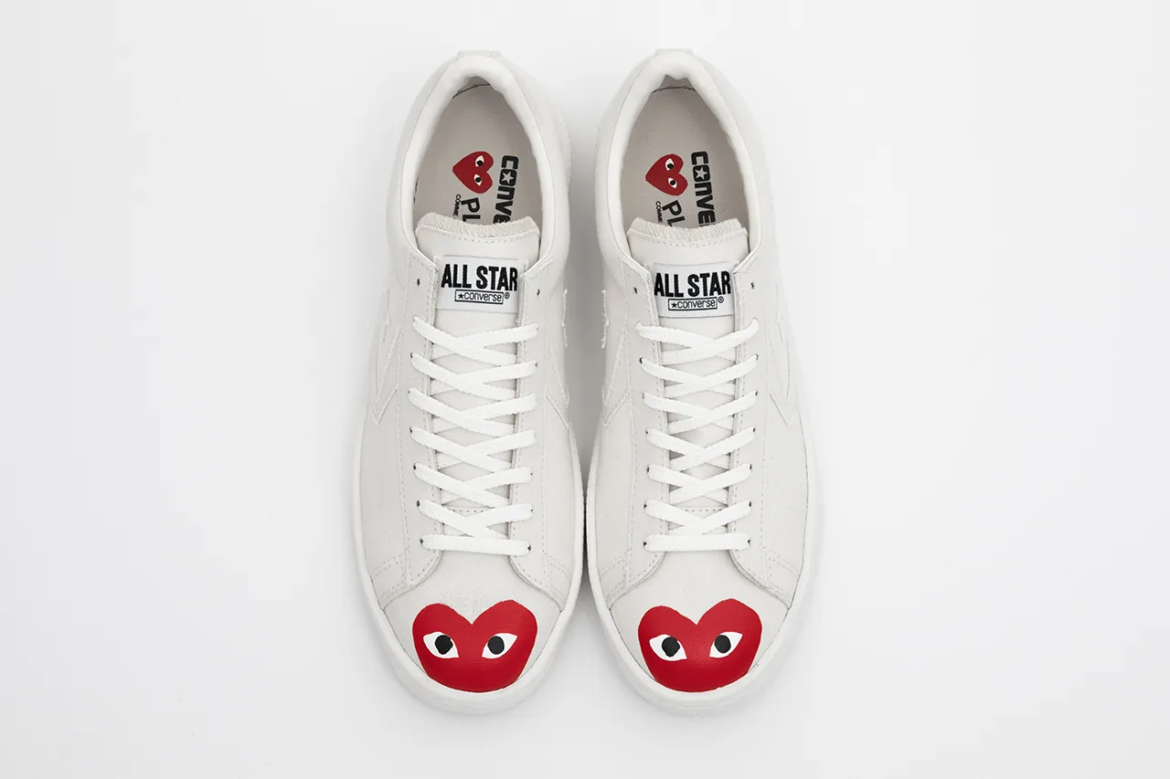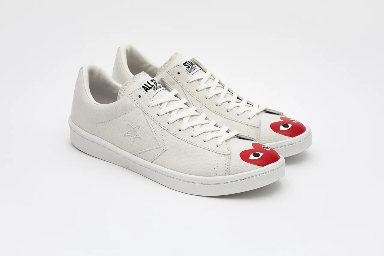 合作密切的 COMME des GARÇONS PLAY 与 Converse 再度推出全新联名鞋款 Pro Leather,有别于鞋型标志性的皮革材质,今次合作选用帆布呈现鞋面,包括极具代表性的红心也是首度应用在鞋头位置,是双方新的一次尝试。 COMME des GARÇONS PLAY x Converse Pro Leather 预计将在 5 月 3 日登陆日本 COMME des GARÇONS PLAY 和 Dover Street Market Ginza 店铺上架,售价 ¥20,900 日元,有兴趣的读者不妨多加留意。 |