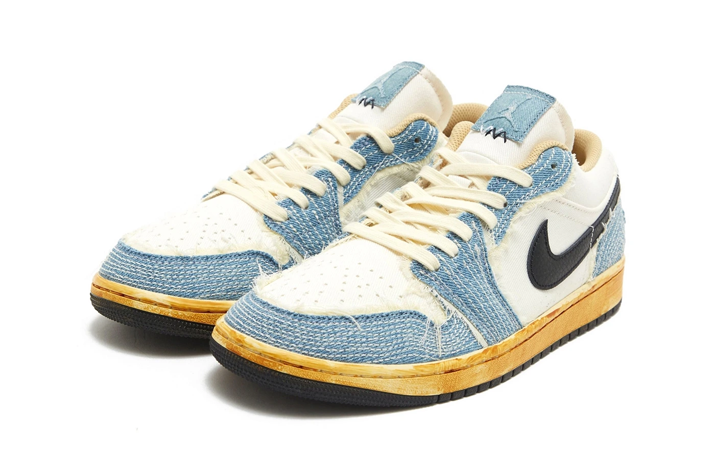 Air Jordan 1 Low 再度迎来全新配色「Sashiko」发布。 Sashiko 意指日本传统缝缀艺术「刺子绣」,是早期用于修补和加强布料磨损的缝缀工法。运用在 Air Jordan 1 Low 鞋面上能够看到在白色帆布鞋面上,覆盖了做旧丹宁布料,搭配白色缝线与不收边的细节,以及泛黄的中底,营造复古手工质感。 此鞋款目前尚未公开确切发售资讯,有兴趣的读者不妨持续关注。 |