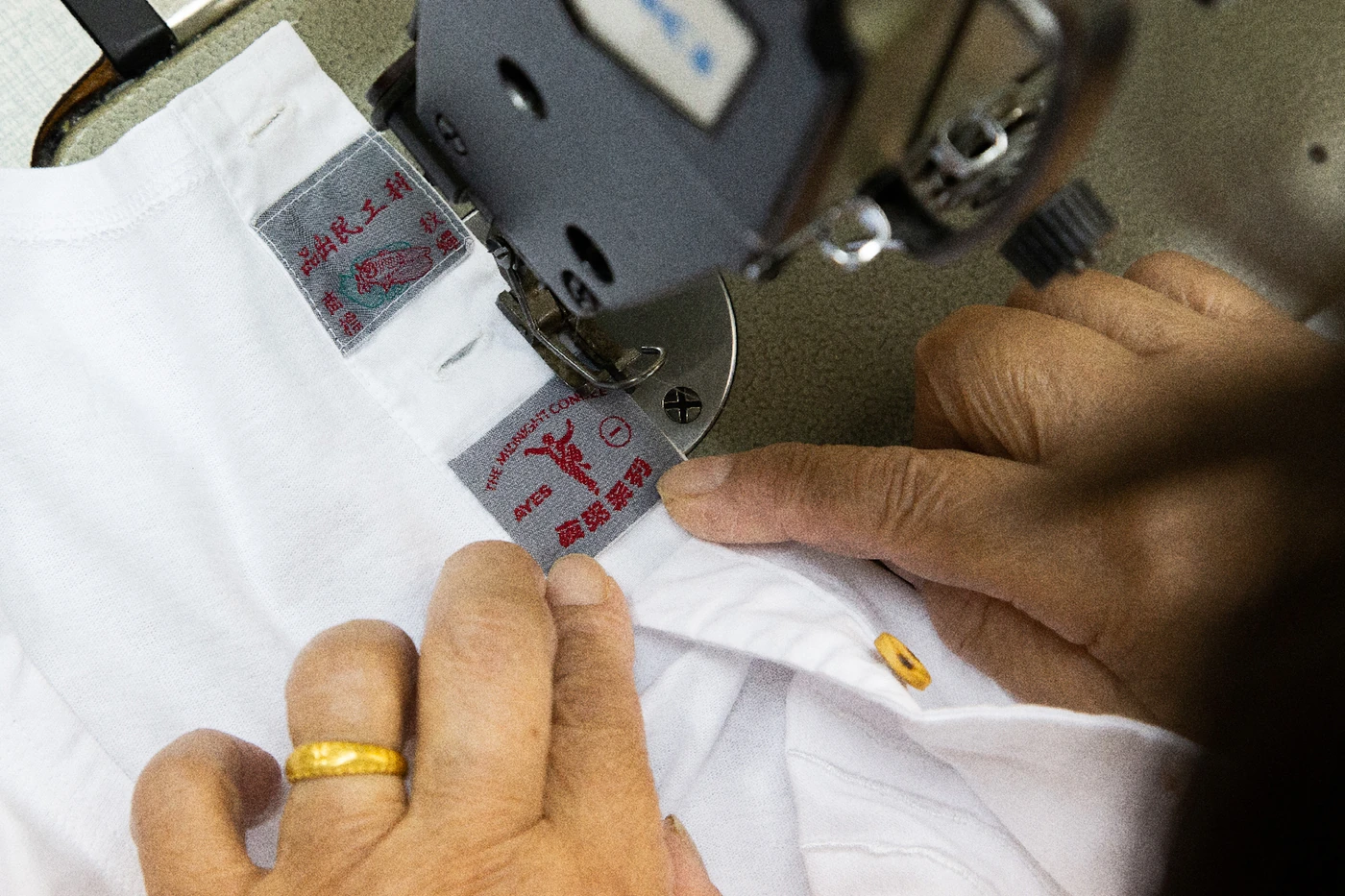 「利工民织造厂」创于 1923 年,现今被誉为香港最历史悠久的本地衣服品牌之一。多年来坚持制作高品质的线衫和羊毛衫,凝聚了近百年的人文历史。今次 AYES 与利工民合作以利工民专用的重磅棉布结合全新的工艺,推出黑白两款限量版短䄂 Henley Shirt,更以「夜粥」为题,大玩香港武术文化。在香港文化中,「食过夜粥」是一个广为人知的广东话俚语,意为精通功夫。其中白色版本取名「香岛」,黑色则为「城寨」,AYES 团队特意采用厚磅棉布取代旧式传统线衫布,并换上火烤过的木钮,增添复古味道。除此之外,每件线衫均为香港制造,坚持以本地团队人手车线,打造香港的 Hanley Shirt。 线衫的两袖以低调的方式刺绣经典的武术哲学金句:「Don’t think, feel!」以及「It’s like a finger pointing away to the moon.」,而胸口则绣有红色的经典爪痕,致敬武打巨片《龙争虎斗》。除此之外,AYES 团队特意为此系列制作特别包版收藏盒,配上 50-60 年代画风的图案,方便收藏使用。据悉每款限定 100 件,定价为 650 港元。  |