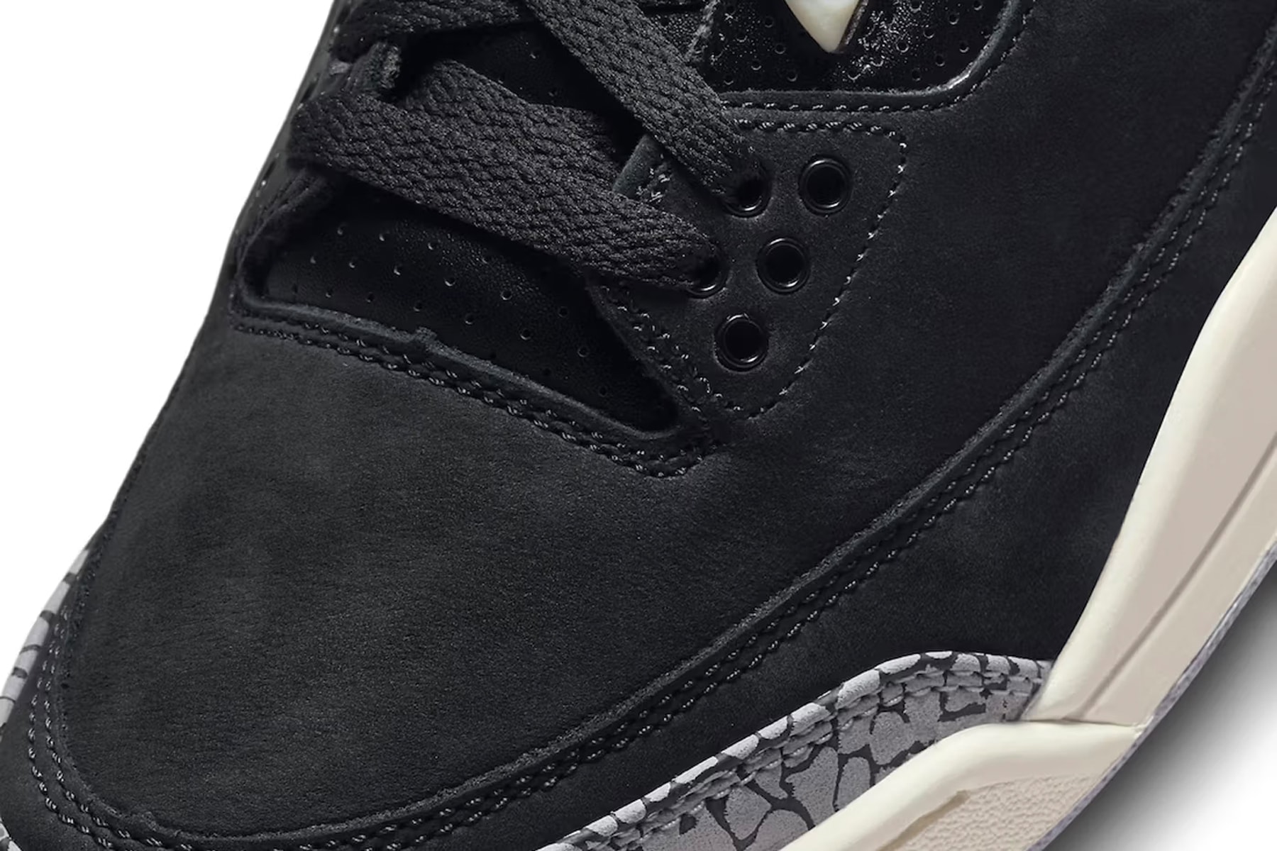 Air Jordan 3 全新配色「Off Noir」于今年 3 月首度曝光,今番正式公开官方图辑、发售情报。 「Off Noir」结合黑、椰奶白与水泥灰色中性色调,令人想起「Oreo」配色方案美学。此鞋的鞋面由黑色绒面革与穿孔皮革混合组成,鞋尖与护边使用灰色爆裂纹元素呈现,搭配椰奶白色中底与黑色凸出 Jumpman 与「AIR」字体标志,散发出一丝复古怀旧氛围。 Air Jordan 3 全新配色「Off Noir」将于 11 月 15 日登陆 Nike 官网,售价为 $200 美元,有兴趣的读者不妨多加留意。 |