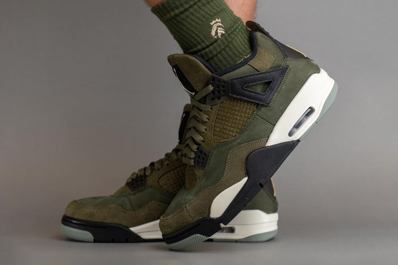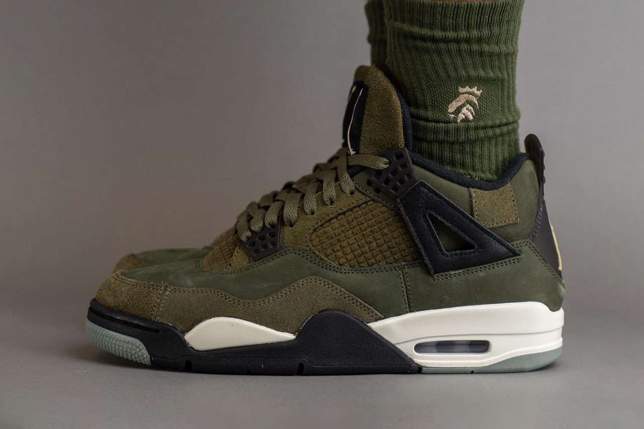 Air Jordan 4 Craft 最新配色「Medium Olive」在本月初率先亮相后,今回接着迎来上脚图辑公开。与一般 Air Jordan 4 鞋型相比,主要体现在材质上的差异,全鞋采用军事风格的混合绿色调构成绒面革、皮革、织物鞋面,搭配黑色鞋舌标签、鞋跟、内里与鞋带穿孔等细节。 目前 Jordan Brand 尚未公开此鞋款确切发售情报,预计会在 12 月 2 日推出,售价 $210 美元,有兴趣的读者不妨多加留意。 |