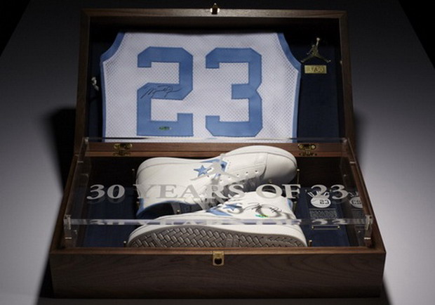 1982年Michael Jordan致命2分的事迹,不用再多阐述相信各位也能倒背如流了。时间30周年之际,前段时间Coverse与Jordan宣布合作复刻那款Michael Jordan决胜2分赛事中的战靴 - Coverse Pro Leather,一时间让掀起了不少炒卖球鞋的人气话题。 不久前为大家预先报道过合作的款式型号,然而近日相关的合作详细信息也被陆续曝光。当中除了标记US 13鞋号的Coverse Pro Leather以外,一同打包推出的还有一款23号的Jordan战衣,球鞋球衣也分别附上Michael Jordan的亲笔签名,绝对是饶富收藏价值之巅峰作品。限量30套中,7套会被硬性赠送给Jordan的指定亲友,而另外23套则作发售用途,收益也将全数拨捐James R. Jordan基金,现正登录ebay火热竞拍,数量极少,想要入手收藏的AJ迷务必加紧留意! |