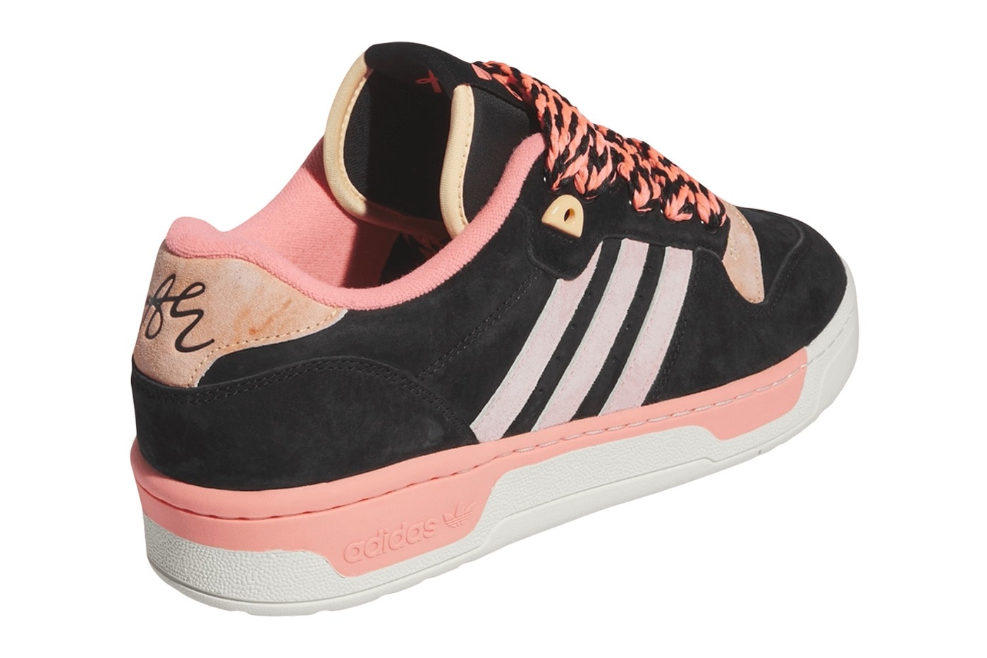 adidas 持续为 Anthony Edwards 打造专属鞋款,继签名球鞋「adidas AE1」后,今回品牌再推出双方携手打造的 adidas Rivalry Low。 Anthony Edwards x adidas Rivalry Low 采用麂皮面料制成,配色上选用黑、桃粉色调呈现,该鞋内衬、两侧的三线条纹、鞋垫以及鞋后跟处皆以桃粉色点缀,鞋垫印有篮球图案,鞋后跟饰有 AE 字样,彰显该鞋身份,配上黑与桃粉 2 色交错的滑板鞋带和白色橡胶大底,让整双鞋更加完整。 Anthony Edwards x adidas Rivalry Low 现已登陆 Foot Locker,售价为 $100 美元,有兴趣的读者不妨自行前往选购。  |