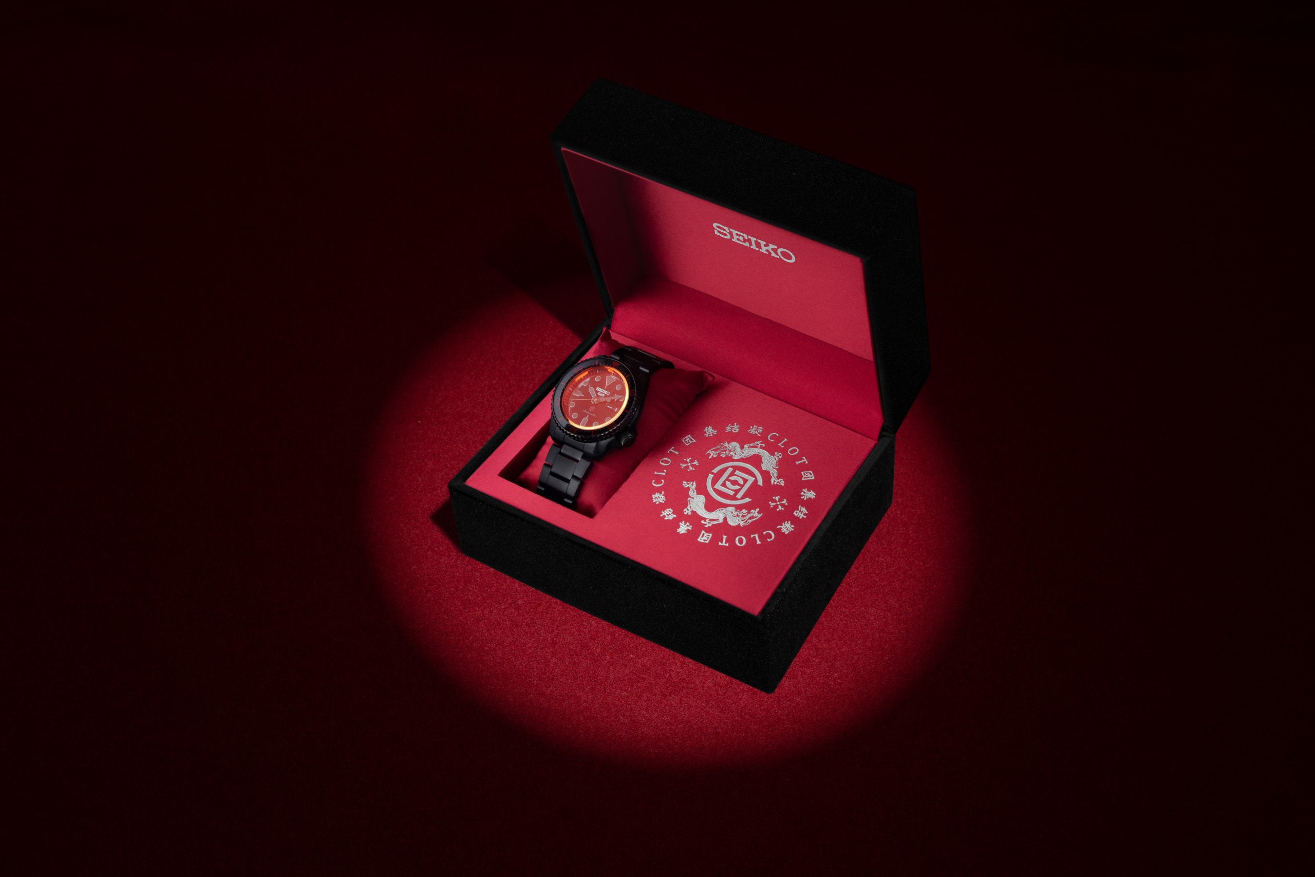 CLOT 与 Seiko 携手展开合作推出全新 Seiko 5 Sports 联名表款,此表采用哑光黑色不锈钢材质制成 42.5mm 表壳和表圈、表带,搭配黑色太阳纹表镜、鲜明红色单向旋转表圈及秒针,细节处还包括 6 点钟位置的 CLOT 标志、3 点钟位置日历窗,坚硬的水晶玻璃表面经过半镜面涂层处理,根据不同观察角度,能够闪烁出红色的光芒,最后还能在表扣处看到品牌标志突显联名身分。 CLOT x Seiko 5 Sports 将在 10 月 10 日正式登陆指定 JUICE 销售渠道发售,售价 $3,180 港币/$13,980 新台币,每枚表款都提供特殊表盒包装,有兴趣的读者不妨多加留意。 |