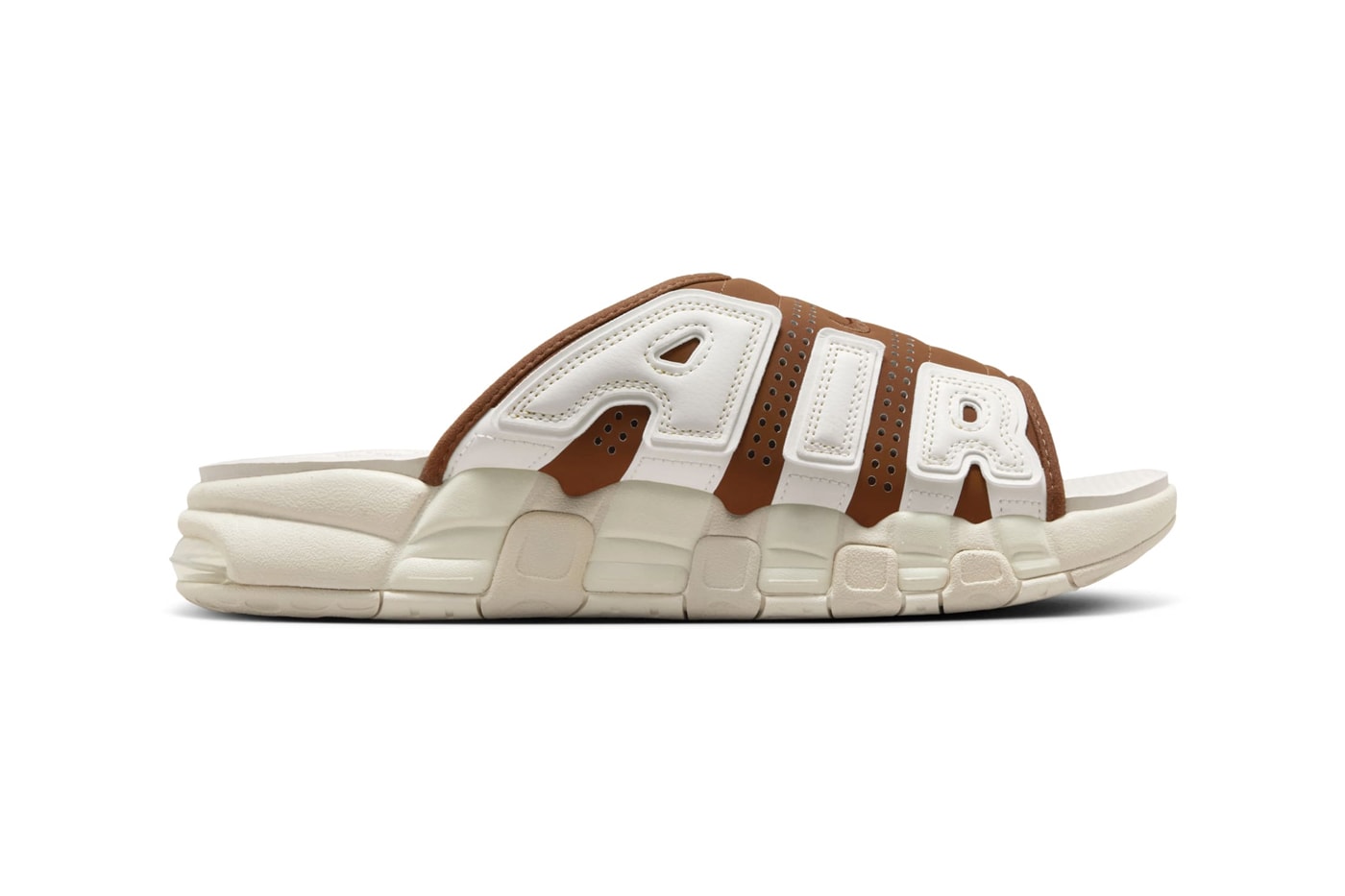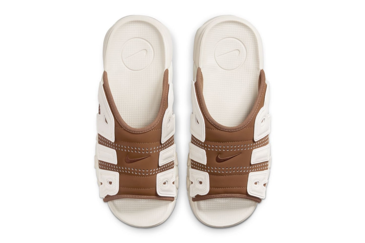 Nike 以 Air More Uptempo 为原型打造的人气拖鞋 Air More Uptempo Slide 再度迎来新作,今回发布全新配色「Brown/Sail」。此鞋款的鞋床、中底、橡胶外底与「AIR」字样以奶油白色完成,鞋面选用深棕色呈现,在颜色方面形成鲜明对比,而细节方面包括刺绣 Swoosh 标志、鞋面透气孔以及兼具缓震和视觉圆润效果的中底 Air 气垫。 Nike Air More Uptempo Slide「Brown/Sail」预计将在今年秋季登陆 Nike 和指定零售商上架,售价 $85 美元,有兴趣的读者不妨多加留意。 |