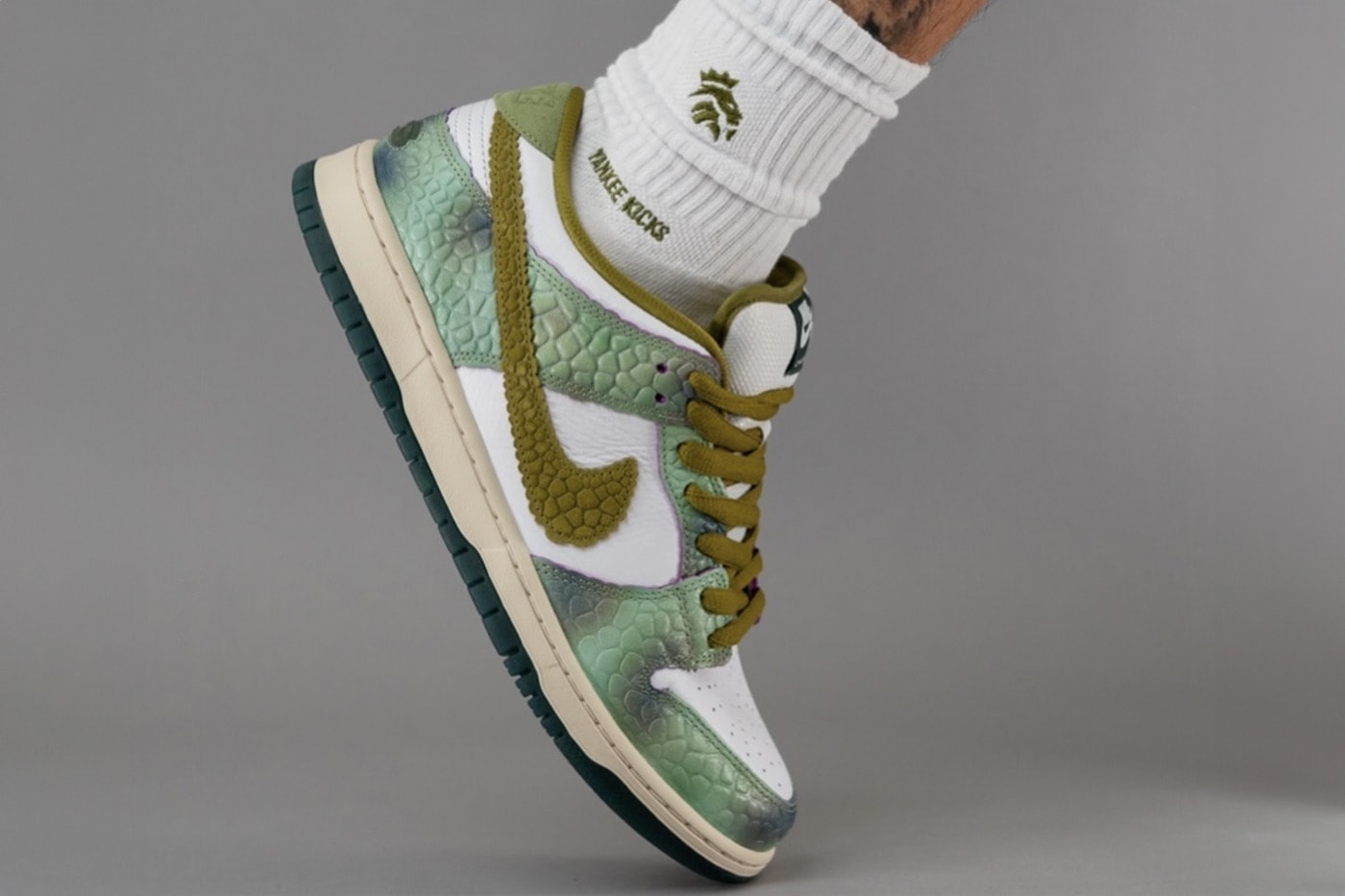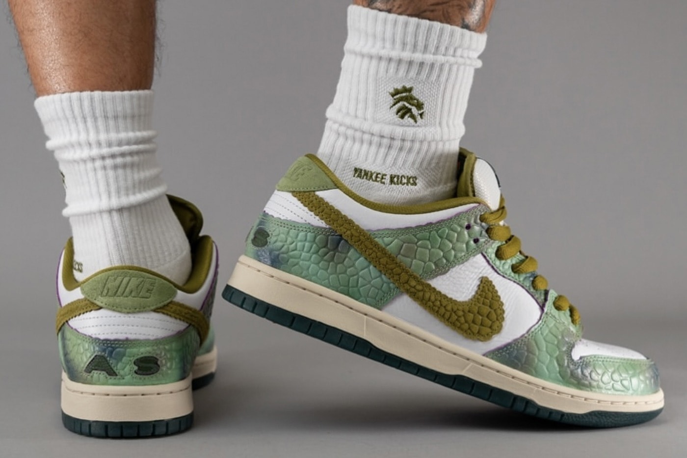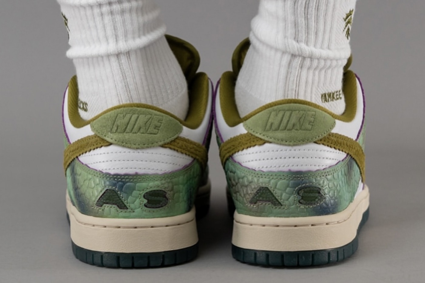 知名滑手 Alexis Sablone 携手 Nike SB 打造 Nike SB Dunk Low 全新联名鞋款。 这双联名鞋款由 Alexis Sablone 亲自设计,鞋身采用白色皮革做基底,配色上选用鼠尾草绿、棕、紫与橄榄绿等色调组成,鞋身饰有鼠尾草绿的鱼鳞设计,两侧的 Swoosh Logo、鞋带、鞋内里以及鞋舌外沿皆辅以橄榄绿点缀,鞋后跟还绣有 A、S 字样,彰显该鞋身份,配上帆色中底、森林绿橡胶大底,让整双鞋更加完整。 消息称 Alexis Sablone x Nike SB Dunk Low 全新联名鞋款将于 8 月 29 日登陆 Nike SNKRS,有兴趣的读者不妨多加留意。 |