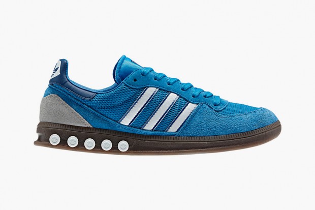 这双相当复古的adidas Originals Handball 5 Plug 鞋款,原形出自1984年的手球世界冠军杯大赛,以当年的配色以及设计忠实复刻呈现,蓝色麂皮的阿迪达斯拿手好戏,搭配同色系网布以及最大特色的大底,强烈的设计一一展现,而代表手球的五颗圆形橡胶,也是本鞋款值得关注的部分。