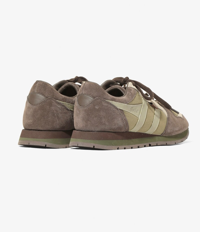 Engineered Garments 携手英国百年鞋履品牌 Gola 打造全新联名鞋款。 今回双方以经典跑鞋 Ranger 为蓝本,并提供「Olive」、「Grey」以及「Brown」3 种配色,该鞋由不同色调的麂皮、光滑皮革和棉斜纹布制成,鞋身还带有英国国旗标签,展现品牌优雅传统,鞋垫处印有 ENGINEERED GARMENTS 与 GOLA 字样,彰显联名身份。 ENGINEERED GARMENTS x GOLA 全新联名鞋款将于 2 月 9 日登陆品牌官网与指定店铺,有兴趣的读者不妨多加留意。 |