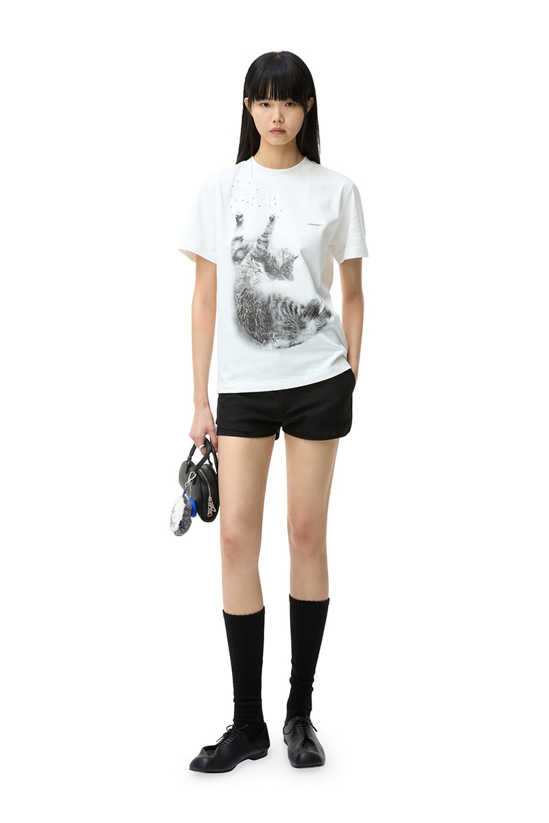 韩国时装品牌 ADER ERROR 正式推出全新胶囊系列。 本系列名为「Purr-Fect Couture」,是品牌首度推出的宠物主题胶囊系列,旨在庆祝人类与猫科动物之间的独特联系。它由五款单品组成,包括三款 T-Shirt 和两款钥匙圈,服装款式的设计皆以白色为基础,并以猫咪图案为主轴,而钥匙圈同样具备猫咪图案,并以蓬松绒毛材质制成。 ADER ERROR 全新胶囊系列「Purr-Fect Couture」现已登陆品牌官网与店铺,有兴趣的读者不妨多加留意。 |