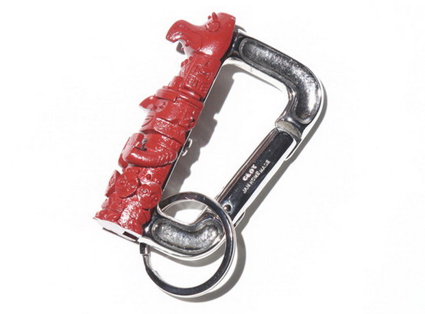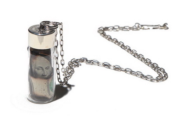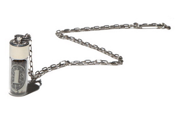 陈冠希主理的香港潮流品牌CLOT,本季特地找来日本银饰品牌大厂JAM HOME MADE共同合作,以空心的表款作为手上的配件为最大特色,第二弹商品也已经曝光,相当大胆的在胶囊般的透明容器之中,加上燃烧过的美钞碎片于其中,相当争议的概念设计,另外还有印地安图腾的挂勾,让outdoor设计融合特别的民族风格。 |