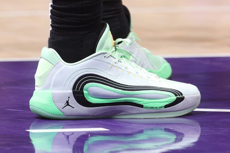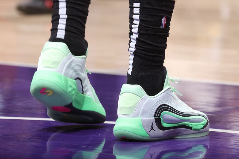 Los Angeles Lakers 球星 Luka Dončić 在首次对战老东家 Dallas Mavericks 的比赛中,率先亮相个人最新签名战靴 Jordan Luka 4。 Jordan Luka 4 延续着 Luka 标志性的低筒轮廓设计,采用浅莱姆绿作为主色调,并搭配抢眼的电光绿细节,展现鲜明风格;侧边最吸睛的元素为动感十足的图案设计,灵感源自赛道风格线条,为球鞋增添速度感与灵活氛围。该复杂图案以电光绿描边,与主体色形成鲜明对比,带来强烈的视觉冲击。 此外,Luka 标志性的双 7 标志以大胆的橘色与粉色呈现在鞋舌上,为整体绿色基调增添亮眼色彩,形成抢眼对比;鞋舌内侧隐藏的爱心细节则增添个人化巧思,象征他对女儿深厚的情感链接。 此鞋款预计于 2025 夏季登场,有兴趣的读者们敬请留意未来追踪报导。  |