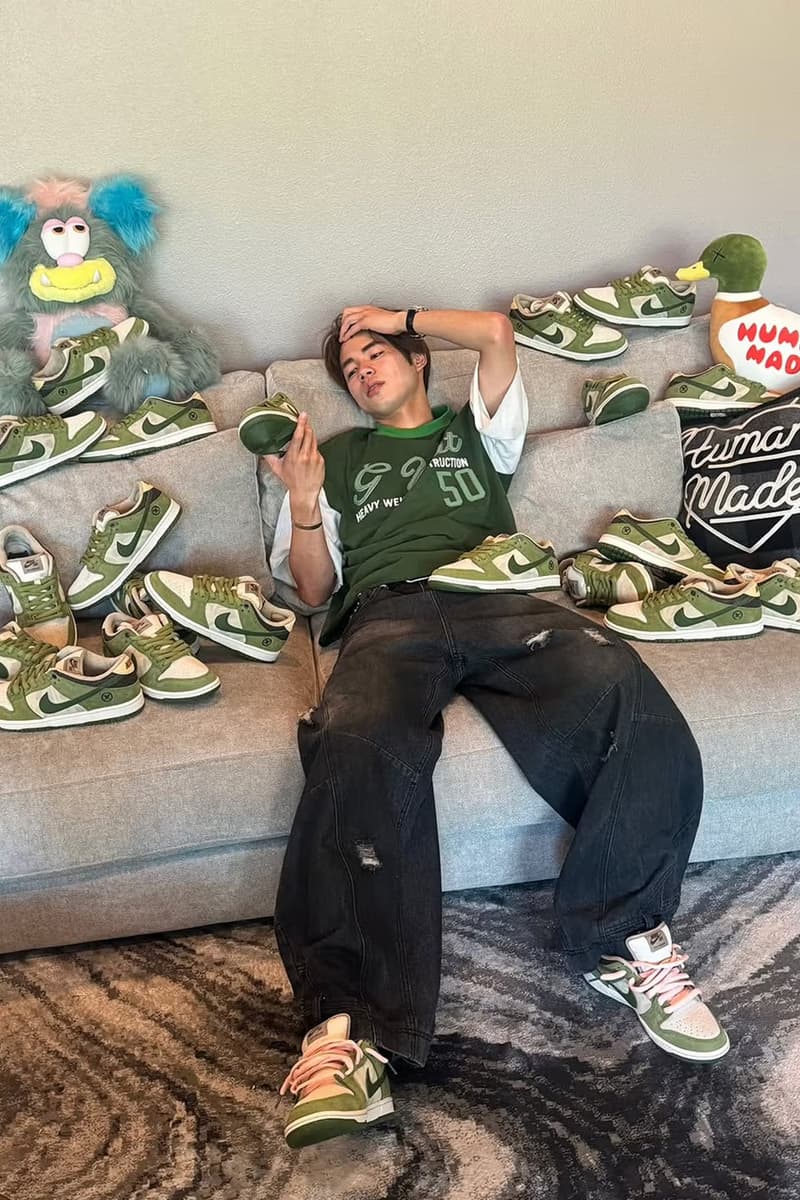 日本职业滑手堀米雄斗与 Nike SB 最新联名鞋款 SB Dunk Low「Matcha」即将于本周正式发售,他本人亦于个人 Instagram 曝光居家上脚照。 只见堀米雄斗置身于鞋海之中,周遭尽是「抹茶」配色的 SB Dunk Low 鞋款。该夕诶款采用浅绿色麂皮,搭配深绿色 Swoosh、外底与米色鞋领;侧边则与前次合作相同,饰有象征「掘米家族」的羽毛家纹,连结堀米雄斗个人的文化视角。 值得注意的是,堀米雄斗还特别将鞋带换成粉色,巧妙制造视觉碰撞,别有一番效果。堀米雄斗 x SB Dunk Low「Matcha」将于 4 月 5 日发售,定价 135 美元。 |