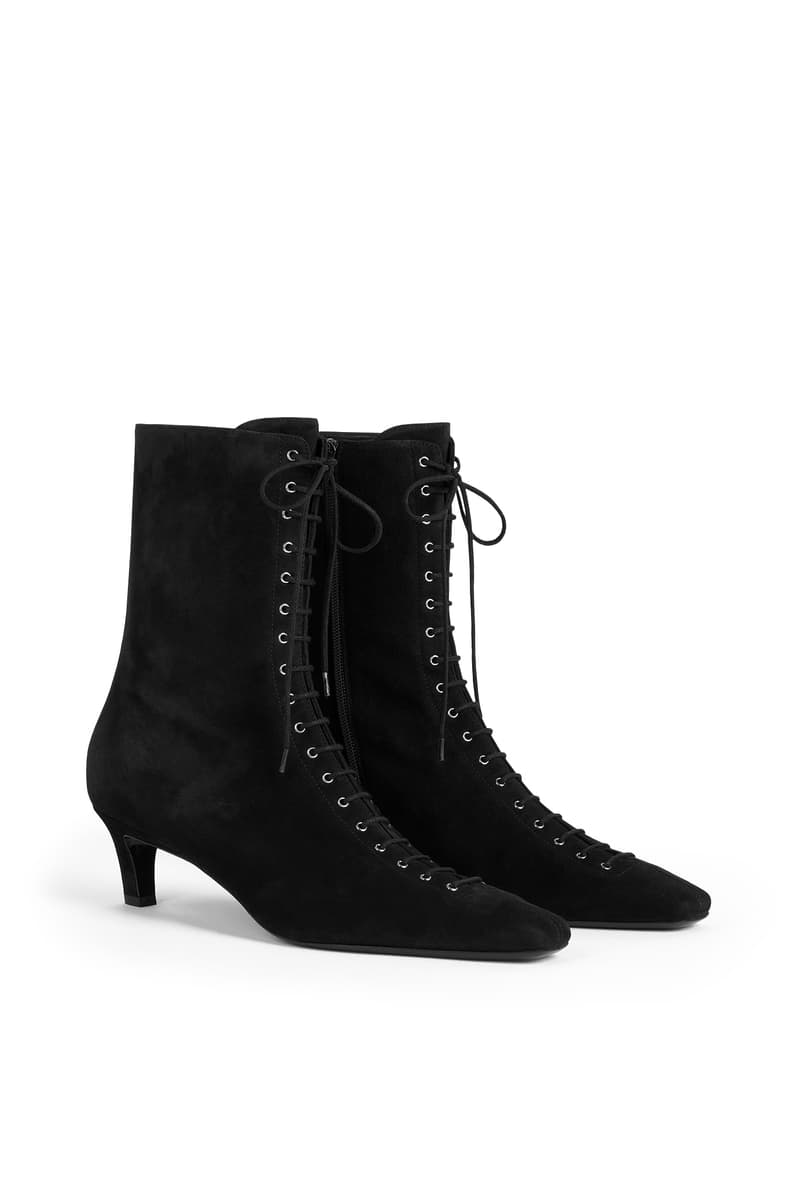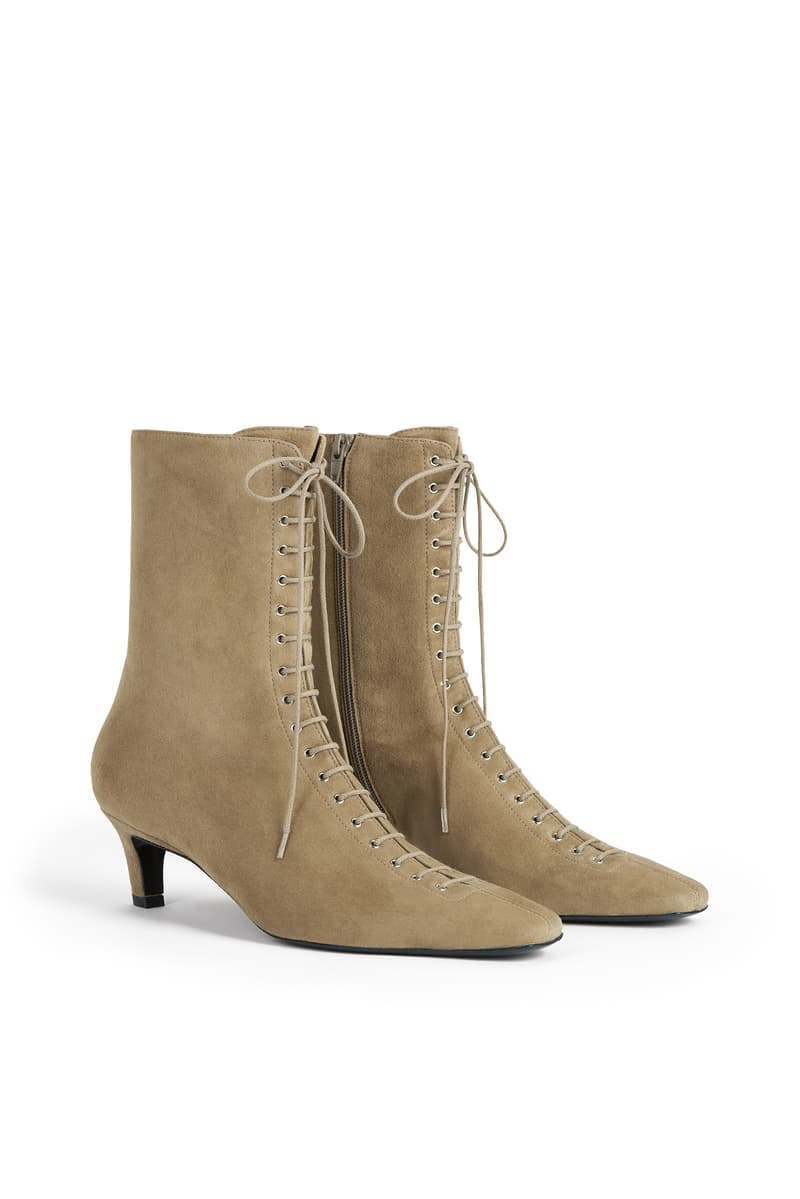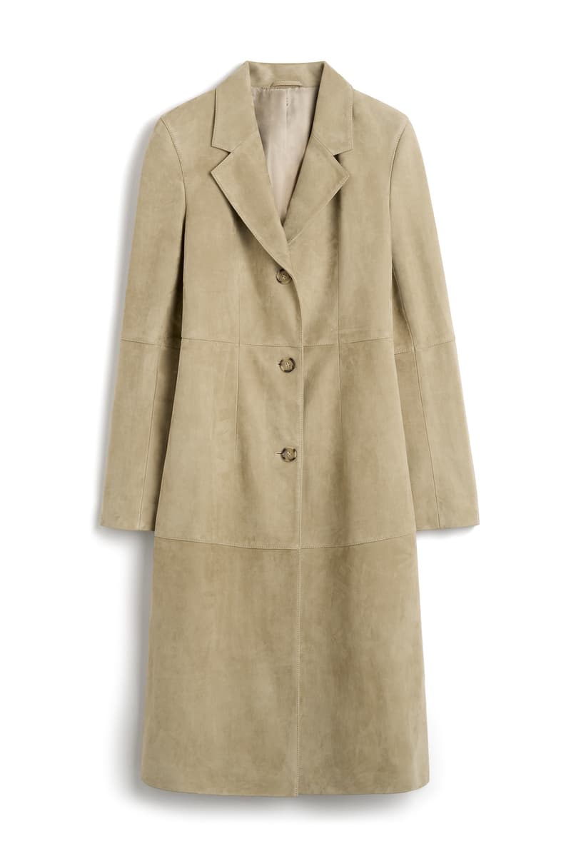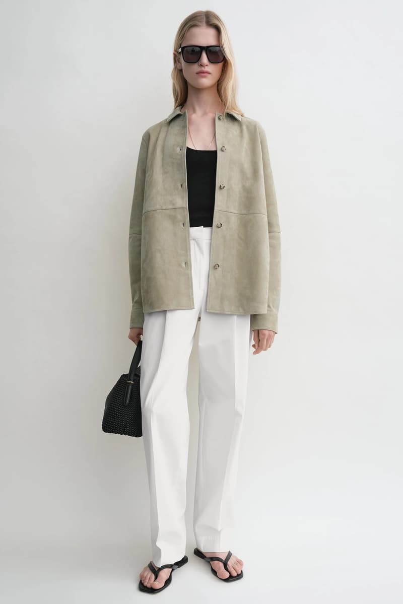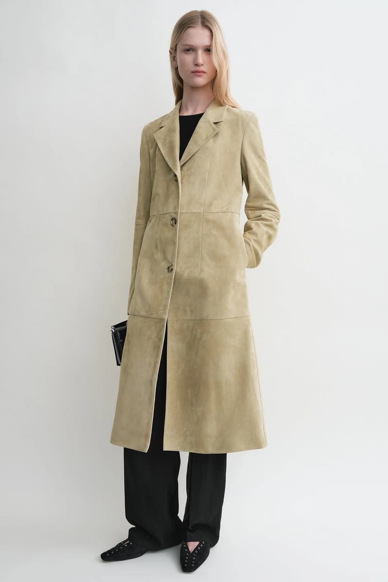 TOTEME 推出全新「麂皮臻选系列」, 该系列以本季精致慵懒风为设计精髓,精心呈现 2025 春夏系列中囊括外套、配饰与鞋履等优雅单品。 驼色系带麂皮大衣是本季标志性外套,采用奶油般柔软的麂皮材质,束腰设计勾勒出流畅而立体的廓形;同色系麂皮衬衫搭配背心,轻松打造夏日层次感穿搭。与之相配的驼色麂皮束带托特包,兼具实用容量与现代优雅气质。经典 T-Lock 手拿包与手提包推出烟草色柔感麂皮款式,以低调奢华的质感点缀日常穿搭,诠释摩登优雅。 马靴与优雅的平底芭蕾舞鞋均选用驼色与黑色麂皮材质,手工系带鞋绳与金属孔眼装饰相映成趣,诠释刚柔并济的时尚美学。 |