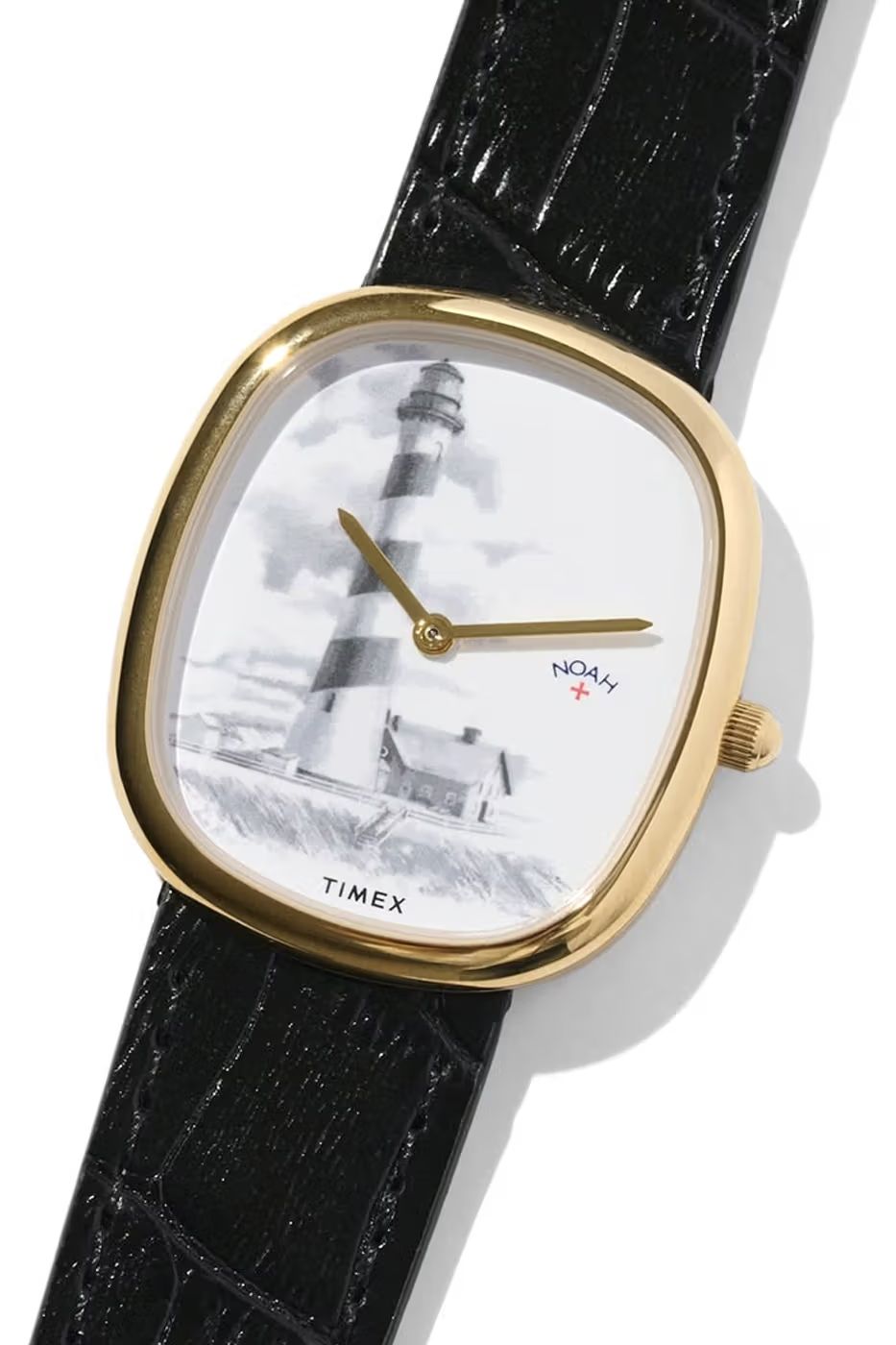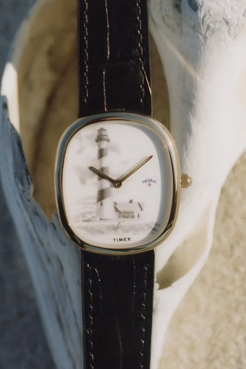 NOAH 与 Timex 即将再度于本季推出第三回的联名表款合作,在官方发布的预告图中能够看到,双方此次选用椭圆造型的表壳设计,与先前搭载月相日历的 Tank 风格表款截然不同,表盘上采用黑白色调的灯塔图案装饰,舍弃钟点标记与刻度,仅在 3、6 点钟位置加入品牌标志,简约盘面与金属表壳、皮革表带的组合尤为俐落。 此款 NOAH x Timex Lighthouse Watch 将于美东时间 2025 年 6 月 5 日登陆 noahny.com 发售,有兴趣的读者不妨多加留意。 |