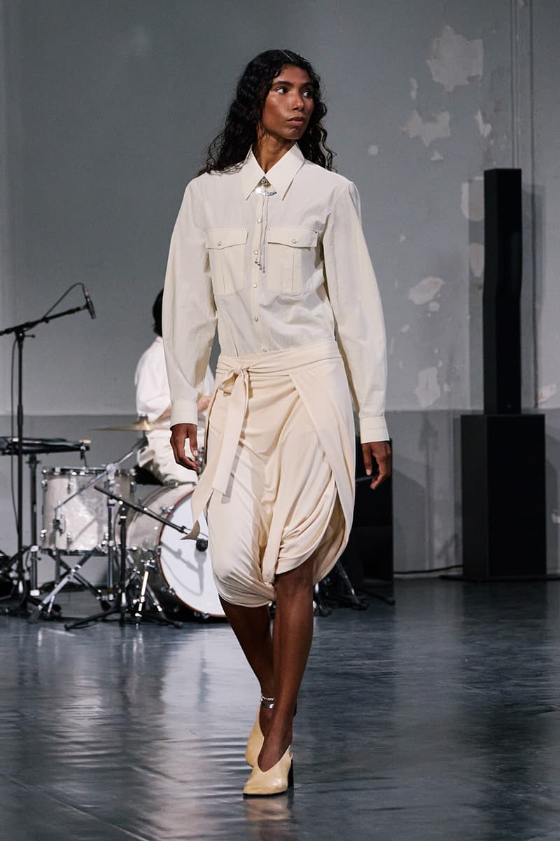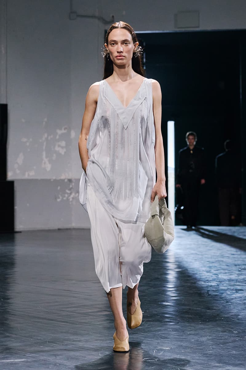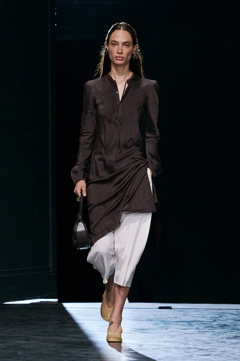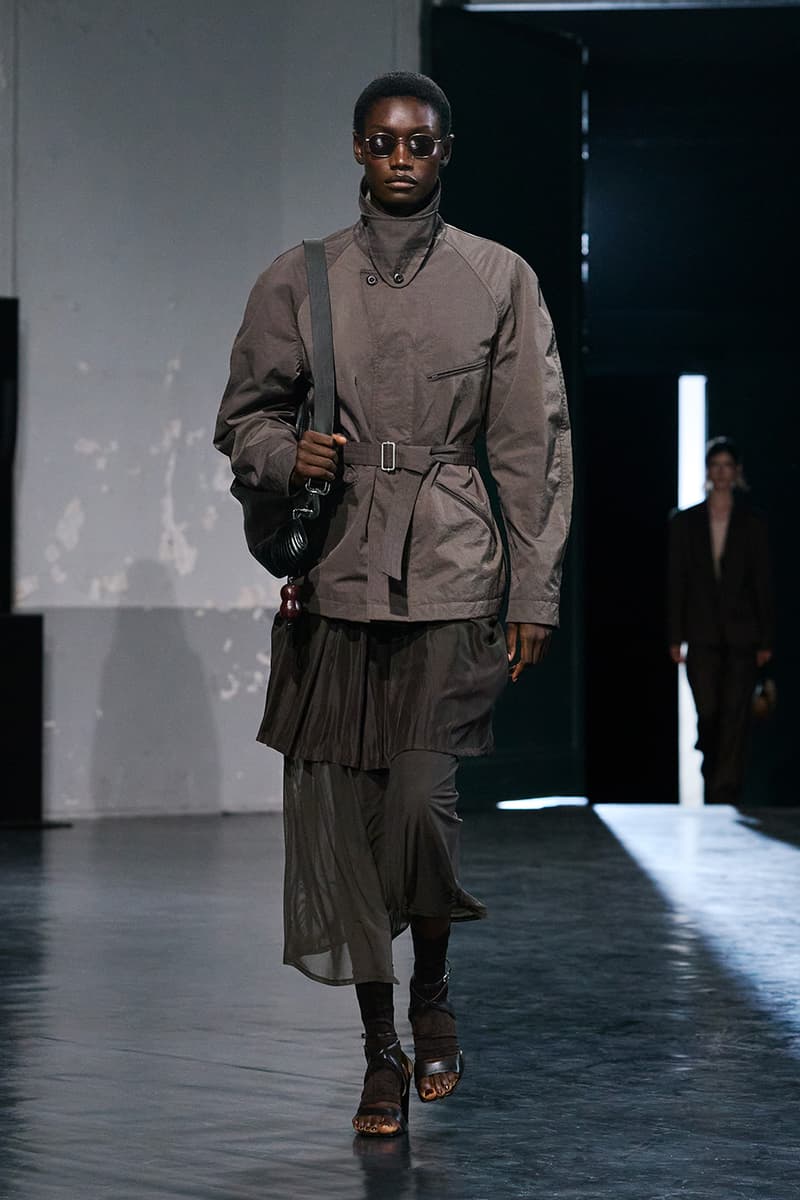 向来以低调优雅与实用奢华见称的巴黎品牌 Lemaire,今日发布 2026 春夏男女装系列。创意双人组 Christophe Lemaire 及 Sarah-Linh Tran 表示,他们的灵感频率源于对时装与风格的深沉热爱;这股热情借由精挑细选的布料、肌理、比例与色彩被无限放大,让「穿衣」化作值得玩味的艺术仪式。整座衣橱流露醒目而自信的气场,并与特邀鼓手 Valentina Magaletti 及音乐人 Zongamin 的鼓与贝斯节拍相互呼应——节奏的清晰断点,正如衣服亦能成为即时沟通的媒介。 系列中,层次配搭讲求即兴:俐落西装外套随性罩在背心之外,西部衬衫轻松束进裙腰。轮廓干净直接,注入运动基因,增幅穿着者的活动度,同时符合城市通勤节奏。不经意的姿态与巧思剪裁释放可感的性感:不对称裙装与垂坠弹性针织连身裙同场亮相,肩位以拉链收拢,仿佛临时以别针固定。嫘萦丝斜纹面料经压制而成的「偶发褶痕」,细腻映衬身体自然曲线,拥抱衣物经岁月磨合的触感之美。 设计团队亦聪明地翻新男装经典:重新定义比例的单排扣西装外套,搭配睡裤、凉鞋及敞领衬衫;小巧飞行外套与贴身上衣对比宽松喇叭裤;直筒牛仔裤配合军靴;皮衣则搭拳击鞋。系列汇聚多重时装史符码,以感性印象拼贴成当代语境的拼贴:宽肩 80 年代飞行员外套与 70 年代军事风 trench coat 并置。色盘如夏夜落日的尾光:鲜橙、焦红、亮红、做旧白,层层递进的酒红、紫与灰,再添日晒褪色暖调,最后由黑色勾勒地平线,一抹微光为收束。 Lemaire 2026 春夏系列已于巴黎圆满落幕,完整造型可于上方图辑细看。身处巴黎或即将前往当地的朋友密切留意。想掌握最新时装动态,请锁定 Yobest.com。 |