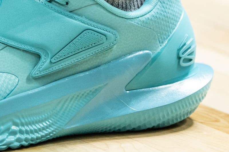 Curry Brand 近日正式公开 San Antonio Spurs 控球后卫 De’Aaron Fox 的全新签名鞋款 Under Armour Curry Fox 2 首波官方图像。 De’Aaron Fox 于近期NBA 夏季联赛场边观战时,亲自上脚展示这款全新设计。鞋款延续 Stephen Curry 经典的三线条图案,标志性图腾出现在 TPU 鞋跟处,鞋身以鲜明的浅蓝色调呈现,搭载 UA Flow 泡棉中底与低筒造型,展现时尚与机能兼具的风格。 相较于 Fox 的首款签名鞋,Curry Fox 2 在设计上更进一步,新增了锁定系带系统。前作以狐狸尾巴为灵感的扣带设计令人印象深刻,而这次的第二代则采用更为尖锐的轮廓设计。此外,鞋舌上方可见「Curry」字样,而 Fox 的个人标志则位于扣带中央,增添独特辨识度。 此鞋款尚未公开发售情报,有兴趣的读者们敬请留意未来追踪报导。  |