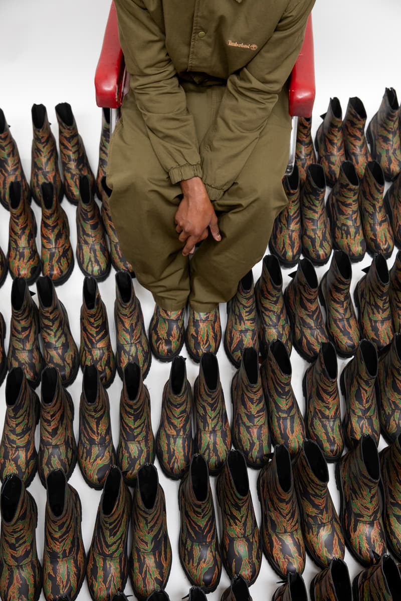 对 SOLDIER 而言,「力量」与其说是一股冲击,不如说是一种能自由渗透的存在状态;那是一场温柔而坚定的世界探索,靠想像力、脆弱与使命感引路。过去几年,这位生于拉各斯、现居伦敦的艺术家以混合媒材为语言,在国际舞台闯出名号,把个人反思与社会评论交织,同时盼与志同道合的创意人同行。他的创作内核聚焦「转化」──自我、空间,乃至我们与周遭世界的链接。 今次他再度与 Timberland 合作,推出第二个创意企划,把艺术视角注入经典 6-Inch Zipper Boot。新作「The Tiger」延续他把迷彩作为反主流符码的招牌手法,加入醒目的斑纹设计,向街头血统与军事 heritage 致意。鞋面同时呼应纽约街头标志性的「beef and broccoli」配色,在文化根基上落脚,同步推进这款经典鞋型的外观与触感。 延续他早前重塑 Yellow Boot 的脉络,「The Tiger」同样是一曲歌颂叛逆、自我表达与行走偏锋的宣言。值此新作登场,我们与 SOLDIER 对谈,拆解迷彩的诗意、靴款灵感,以及艺术如何映照并重塑世界。 |