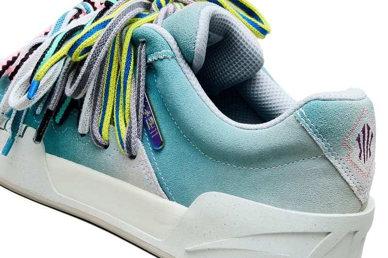 名称:Kyrie Irving x ANTA Hélà Style「Roots」 配色:「Ombre Blue」、「Ombre Black」 货号:待定 建议售价:$125 美元 发售日期:8 月 16 日 发售渠道:ANTA 及各大指定零售商 ANTA Hélà Style「Roots」以两款全新配色 ——「Ombre Blue」与「Ombre Black」再度上阵。此鞋款原为中国限定,将滑板灵感与 Kyrie Irving 的个人哲学糅合,向血脉传承与精神身份致敬。鞋面采用透气二层牛翻毛皮,低筒剪裁辅以精致刺绣和莫卡辛式流苏,并配上醒目彩色鞋带,型格倍增。耐磨橡胶外底提供出众抓地力,EVA 中底则确保日常上脚的轻盈舒适。 外底被划分为四块象征性「板块」,分别对应 Kyrie 世界观的内核:家族根基、球场传承、部族血脉与文化共融。这些细节不止于视觉玩味,更映照 Irving 对真我与祖先链接的坚持。 |