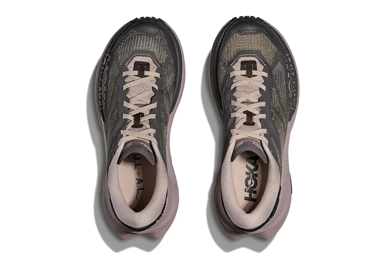 _J.L-A.L_ 再度联手 HOKA,为 MAFATE X 越野跑鞋披上两组崭新配色:「Jet Black/Espresso」及「Beluga/Volcanic Ash」。前者以深邃纯黑为底,叠加浓郁 Espresso 覆层与细节性反光点缀;后者则以冷调灰作主色,配衬柔和面板,低调而层次丰富。两款均在鞋舌与后跟压印联名标志,并配上同色鞋带孔及一体成型 TPU 后跟支架,细节到位。 延续鞋款的越野血统,中底采双密度高级泡棉,并覆以 PEBA 层,强化回弹;再结合分叉式碳纤维推进板,带来迅捷推力。超轻透气纺织鞋面搭配专利申请中的动态鞋楦,贴服包覆同时快速排水;Vibram® Megagrip 外底配备 3.5 mm 齿纹及分区橡胶垫,应对多变地形依旧牢牢咬地。HOKA 招牌 Active Foot Frame™、MetaRocker™ 几何结构联同一体式鞋舌与加固鞋头,为长距离越野旅程提供全方位稳定支援。 |