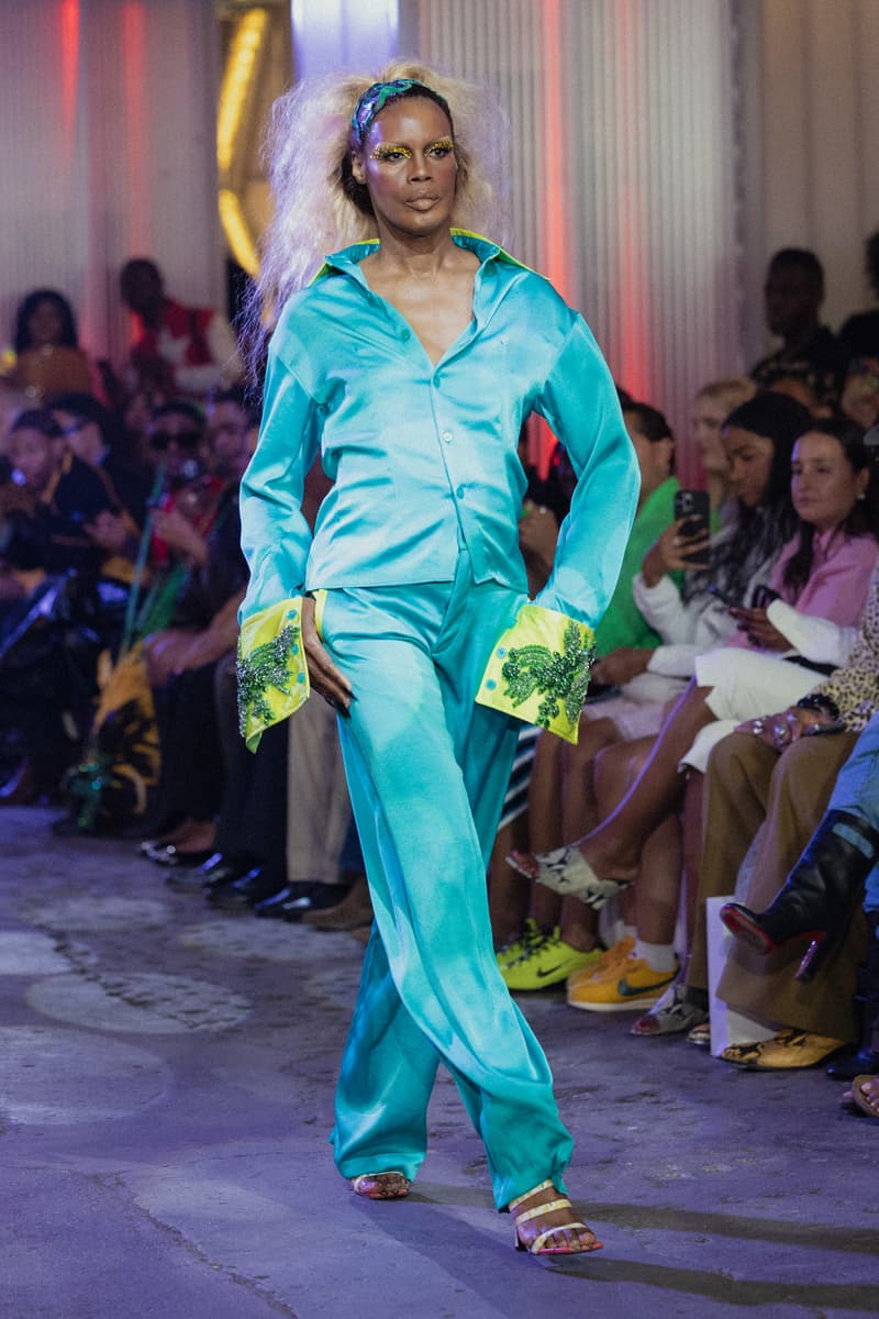 Theophilio 2026 春夏大秀《Riddim》把加勒比的热情原汁原味地搬到布鲁克林。设计师以一系列洋溢岛屿无忧气息的单品,向自己的血统致敬,并把这份基因贯穿每一寸布料。Thompson 透露,灵感源于与好友的漫长兜风,以及沿途那些色彩与质感都令他脱胎换骨的目的地。那些难以言喻、无法被具象捕捉的瞬间,透过他的设计被尽可能真实复现。 他把这一季称为「一卷视觉混音带」,囊括涂鸦亮片泳装、印花迷你裙、同款印花成套造型以及缎面 tracksuit,尽显这位牙买加裔美国设计师招牌式的随性与暖度。琥珀黄、正红与宝蓝三原色率先吸睛,大胆图案与色块拼接更是牢牢锁定视线。每件作品踏上 T 台,Thompson 都在续写他的「可穿著自传」,再次向孕育他的多彩文化献上情书。 系列的「浮夸浓度」恰到好处 —— 既有为闷热、拥挤的舞池而生的吸睛单品,也有适合海滩的松弛 look。衬衫被故意敞到极限,闪耀 Speedo 搭配喷枪彩绘肌肤;《Riddim》显然不适合低调派,但 Theophilio 的风格密码本就以大胆宣言见长。 为整场秀收束情绪,设计师以加勒比 dancehall 节拍贯穿全程,并让数位模特戴上耳机踏台。Puma Mostro 球鞋和流线尖头靴则为这组热带序章画下点睛之笔。 滑动浏览完整 2026 春夏系列造型照。 |