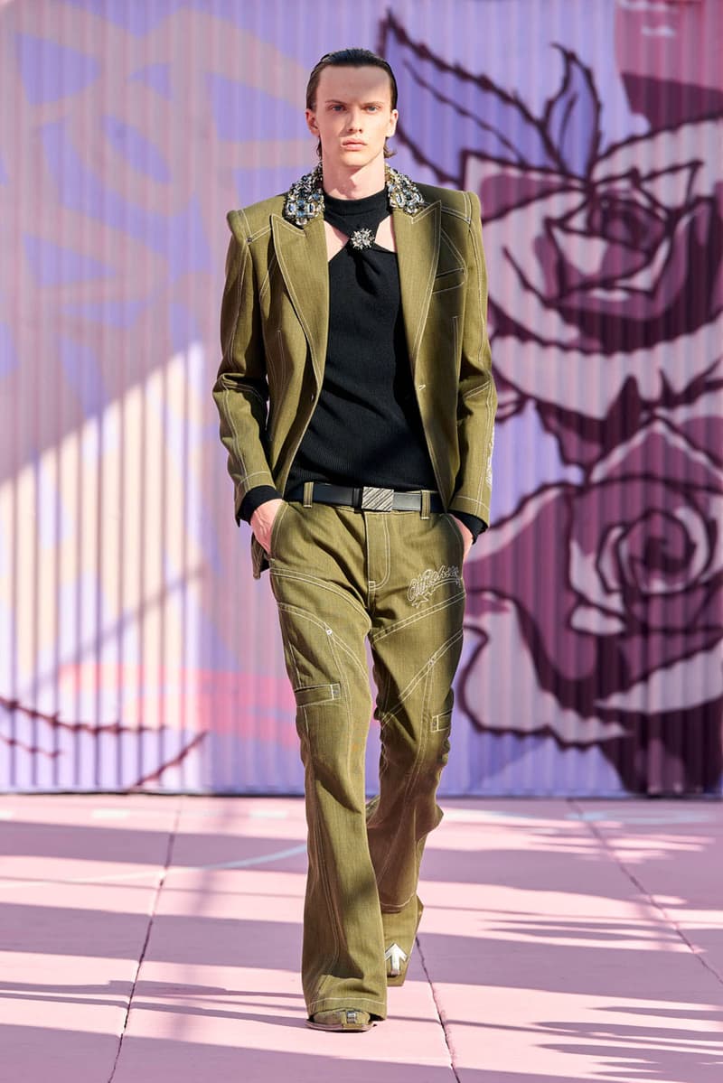 周五午后,Off-White™ 把纽约 New Design High School 的天台篮球场变身成一条炫彩伸展台,发布 2026 春夏系列「Pop Romance」。 场地四周以涂鸦壁画包围,灵感取自纽约市五大行政区,向已故创办人 Virgil Abloh 的标志性元素致敬;作品由本地涂鸦老将 Daze、Lady Pink、Mast 与 CES 操刀。现任创意总监 Ib Kamara 的设计在其间穿梭,同样呈现万花筒式的视觉冲击。本季,他以宣言形式歌颂黑人文化对流行文化的深远影响,整个衣橱活灵活现地借鉴 70 年代 —— 一个非裔创作者以坚韧在 Disco、Hip-Hop 及 Streetwear 领域杀出血路的黄金年代。 「这是一种以创造为抵抗、以自我表达为生存的姿态。」Kamara 在秀场说明写道,「这股生命力源源不绝,持续赋予我们力量。系列同样被此能量驱动,绝非单纯怀旧;我要捕捉的,是最纯粹、最属于纽约的即时张力。」 系列核心是喇叭裤的流线与轻透缎面,配合棱角分明的高彩度剪裁,为造型收尾。另一边厢,张扬的 Varsity Jacket —— Off-White™ 一大经典 —— 在校园背景下显得格外切题。品牌亦先行预告与 New York Liberty 的联名,模特儿一边运球、一边踏上球场伸展台;球队吉祥物 Ellie the Elephant 则坐镇前排,全程拍录。 Kamara 总结:「当这座城市重新接通黑人文化的根源,浪漫便自然在流行脉搏中绽放。」 点击上方图库,率先欣赏 Off-White™ 2026 春夏系列全貌。 |