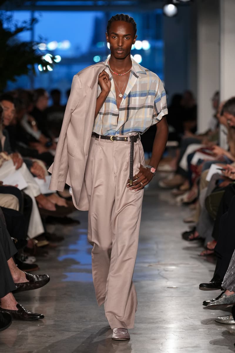 周六下午,Todd Snyder 在纽约总部以「La Buena Vida」(西班牙语意为「美好生活」)迎接时装周座上客,并借此发布 2026 春夏系列设计宣言;灵感锁定度假心态满溢的哈瓦那绅士衣橱。 「这个系列与其说是一个目的地,不如说是一种心境。」刚陪家人走访哈瓦那归来的 Snyder 解释:「它把 1950 年代哈瓦那略显褪色的华丽,与 1980 年代那位穿着亚麻西装、刚从水上飞机走下迈阿密码头的型男气势,巧妙交织。」 全系列 44 套造型中,麂皮感亚麻 Ricky 外套、松身正装套装、高腰 Hollywood 长裤及丝质西装轮番亮相,瞬间把模特带到 Snyder 想像中的度假坐标。宽版图案领带 —— 灵感取自 50 年代中期风格与 80 年代西装 —— 随性垂坠于颈间;Flamenco 波点与复古阳伞条纹占据休闲衬衫,休闲氛围随之蔓延。 脚上也同样悠闲,模特踏着柔软乐福鞋与渔夫凉鞋,游走于暖黄灯光的秀场。细心的行家还会捕捉到品牌与 Timex 的最新联名 ——1976 年经典腕表的复刻版,以及 Marlin 表款的崭新改款 —— 低调点缀于手腕之间。 他补充:「系列自带张力,既有剪裁的挺拔结构,也不乏柔和而性感的轮廓。」 点击上方图集,率先浏览 Todd Snyder 2026 春夏系列造型照。 |