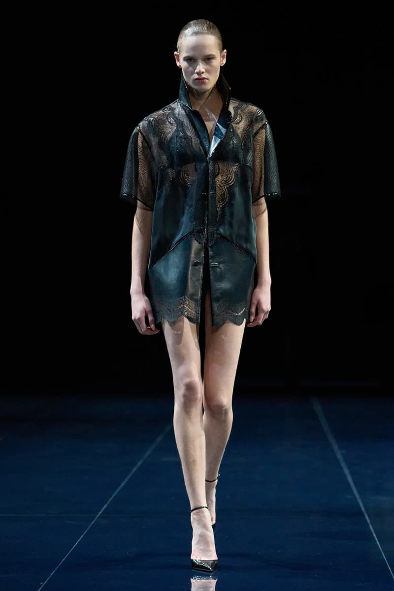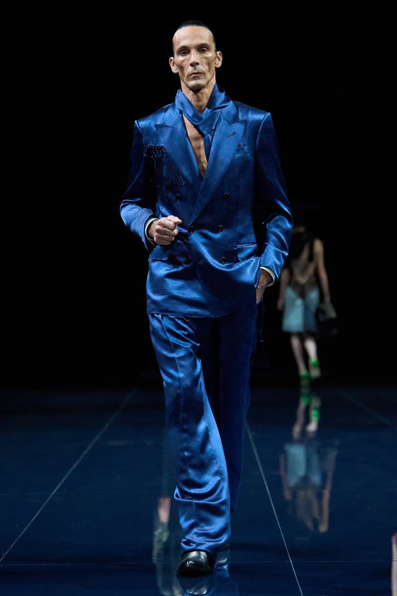 在巴黎时装周上,Haider Ackermann 为 Tom Ford 发表他操刀的第二个系列,以有力且精致的性感诠释巩固其美学视野。2026 春夏系列大秀上,品牌的华丽传承与 Ackermann 标志性的流动与精准美学,展开一场精彩对话。 该系列以质感、色彩与动态为核心,重新定义当代诱惑。锐利剪裁贯穿全场,贴身搪胶西装与合身铅笔裙宛如性感铠甲;相对地,晚装以修长飘逸的长裙与流动丝料为主,像「夜潮」般滑过身形。Ackermann 避免过度裸露,透过精准镂空与半透面料的布局,把诱惑升华为一种存在状态——「身体的诗意」。 色彩方案为品牌脉络注入明快活力,超越单一的黑与裸色。耀目白与深蓝为基调,并以酸性绿、光泽 Klein blue 及甜腻粉红点缀,所有色彩映衬在高光漆面天桥上。配饰从带有挑逗意味的金属环凉鞋到俐落细跟高跟鞋一应俱全,成就既具戏剧张力又内敛克制的整体造型。Ackermann 的手法是两种视角的真正融合,证明在他掌舵下,Tom Ford 持续重塑当代欲望的边界。 |