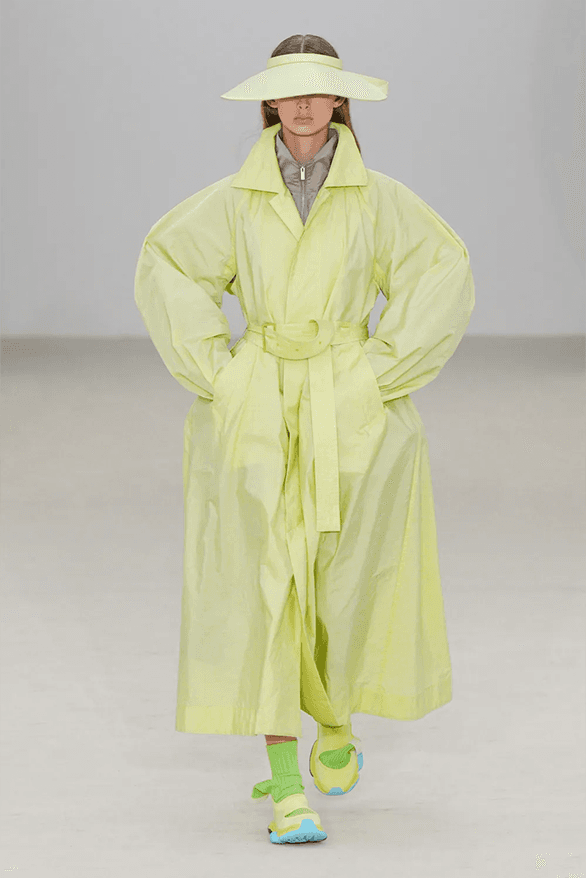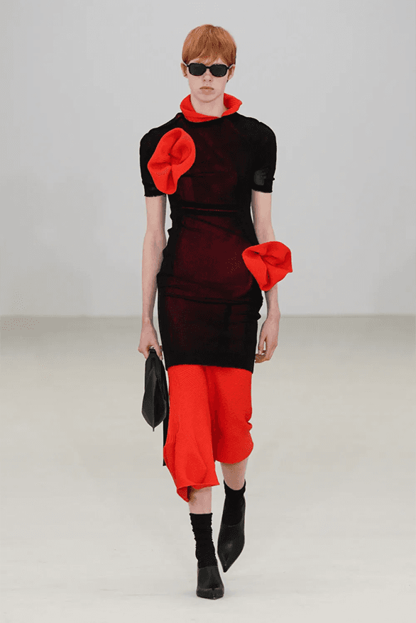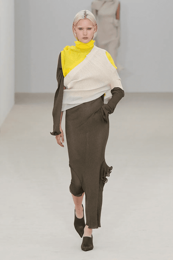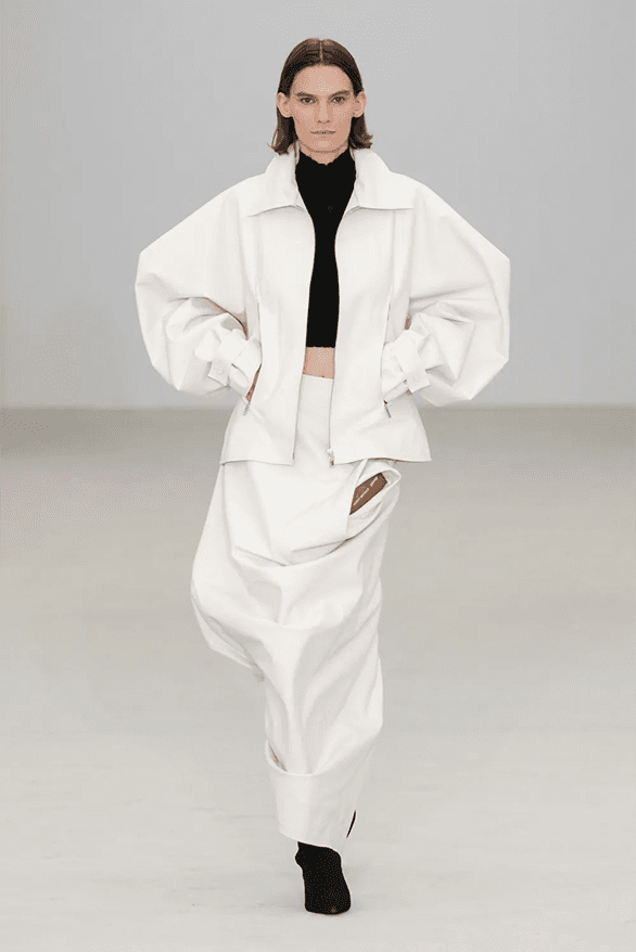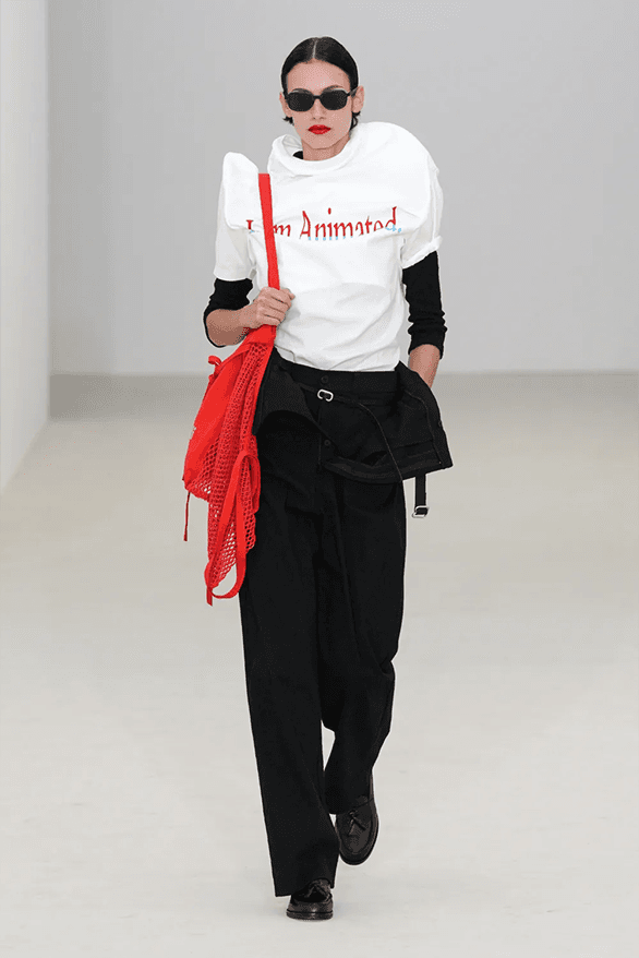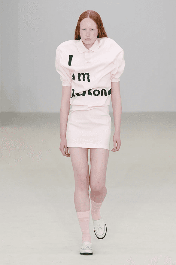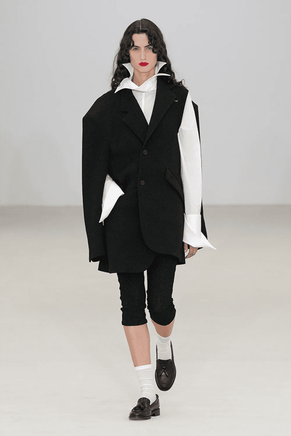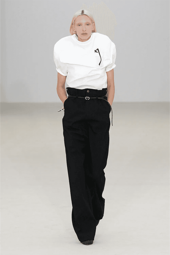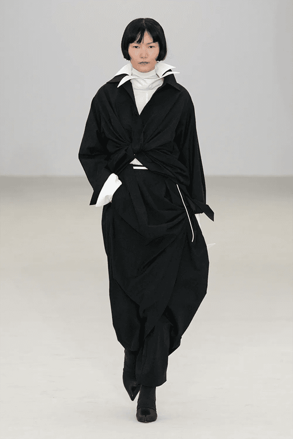 来到 2026 春夏系列,Issey Miyake 把身体视为一件「物」,以带点玩味的耸肩为巴黎时装周第五日揭幕。这家日本时装巨擘以现场乐声与雕塑感造型迎接来宾;系列将不对称肩垫铺展至印花 T 恤、间条 Polo 恤与未收边衬衫,邀请穿着者把自身形态视作一个自主个体。 系列以「Being Garments, Being Sentient」为题,设想衣物拥有自我意识,每件单品彷彿各有主张。它鼓励人们重思熟悉的穿衣规则:扣襟衬衫在背部敞开、袖子任其自由垂落、羊毛西装外套去掉一侧袖。外套被改裁成长裤;图案 T 恤与缩身版连帽卫衣则加上外凸肩部设计,整体节奏随 Tarek Atou 的现场音景推进。 垂坠与折裥在雕塑感连身裙上寻得新解,并延展至罗纹长袍、植物印花晚装,以及如万花筒般的错配色。压轴一幕,模特儿手捧崭新的 Camper Lab 鞋盒走过天桥,首度公开 2026 春夏系列的全新联名一脚蹬。 上方可进一步细看 Issey Miyake 2026 春夏系列。 |