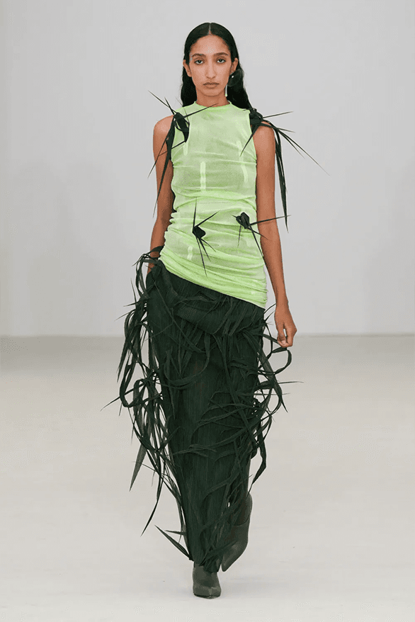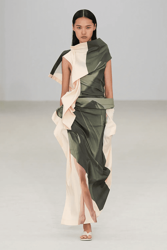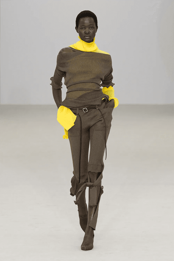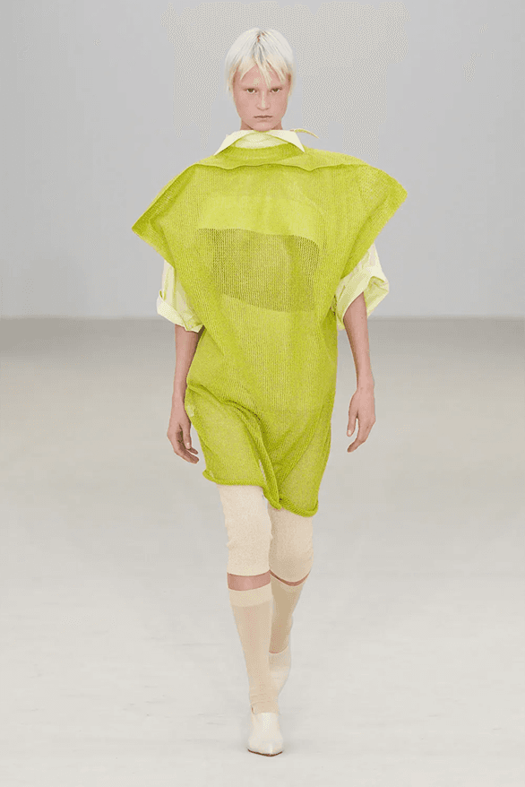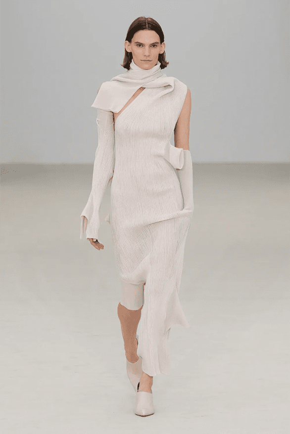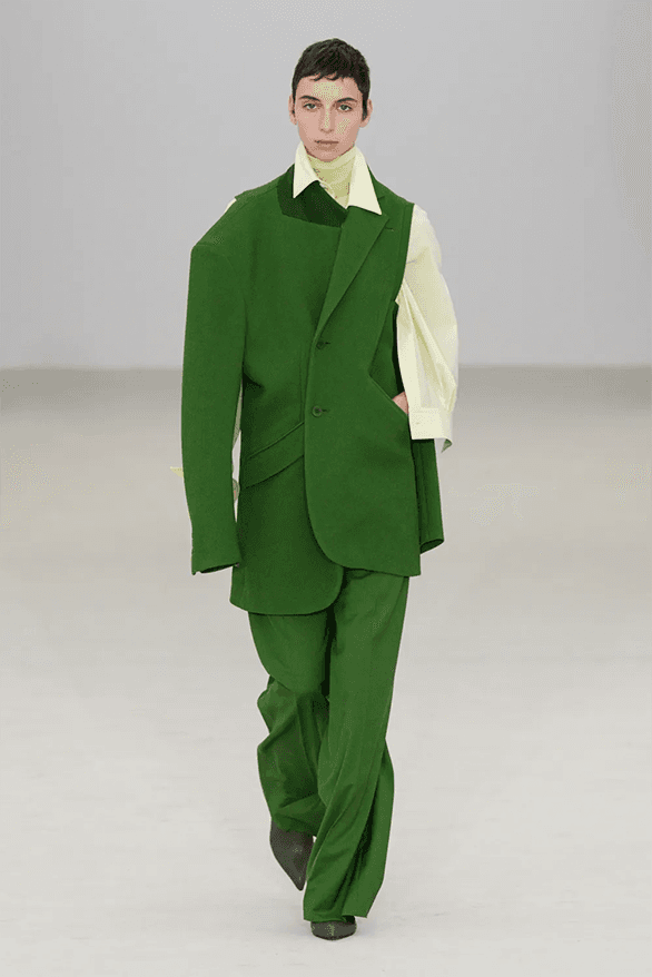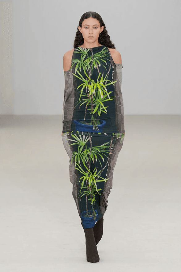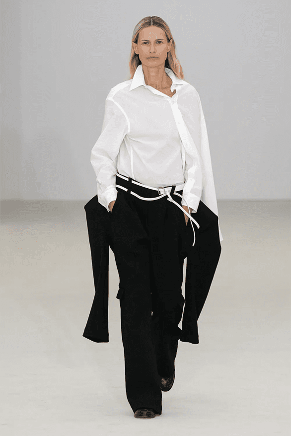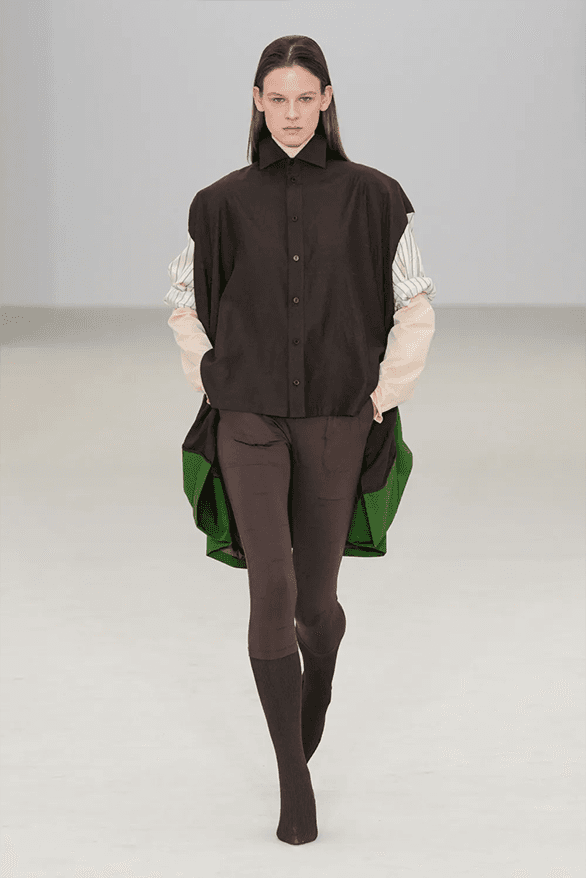 来到 2026 春夏系列,Issey Miyake 把身体视为一件「物」,以带点玩味的耸肩为巴黎时装周第五日揭幕。这家日本时装巨擘以现场乐声与雕塑感造型迎接来宾;系列将不对称肩垫铺展至印花 T 恤、间条 Polo 恤与未收边衬衫,邀请穿着者把自身形态视作一个自主个体。 系列以「Being Garments, Being Sentient」为题,设想衣物拥有自我意识,每件单品彷彿各有主张。它鼓励人们重思熟悉的穿衣规则:扣襟衬衫在背部敞开、袖子任其自由垂落、羊毛西装外套去掉一侧袖。外套被改裁成长裤;图案 T 恤与缩身版连帽卫衣则加上外凸肩部设计,整体节奏随 Tarek Atou 的现场音景推进。 垂坠与折裥在雕塑感连身裙上寻得新解,并延展至罗纹长袍、植物印花晚装,以及如万花筒般的错配色。压轴一幕,模特儿手捧崭新的 Camper Lab 鞋盒走过天桥,首度公开 2026 春夏系列的全新联名一脚蹬。 上方可进一步细看 Issey Miyake 2026 春夏系列。 |