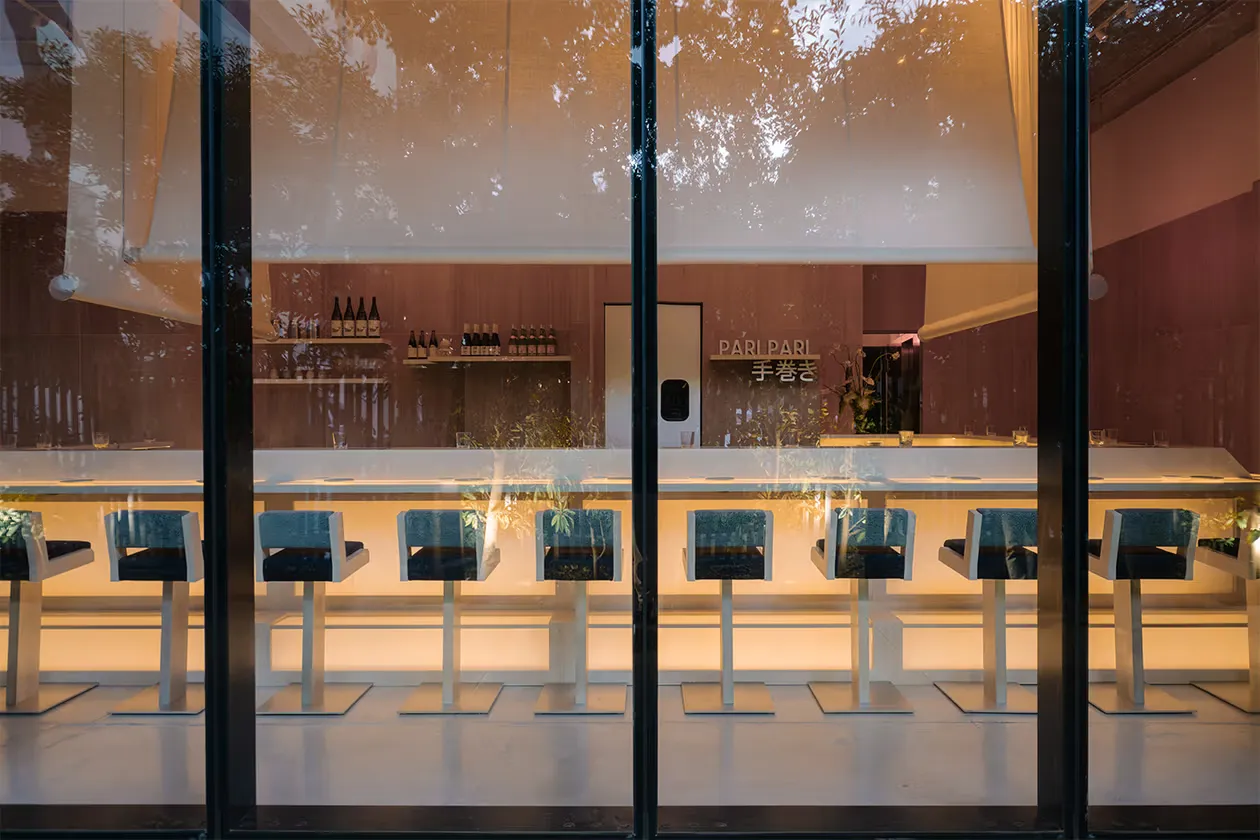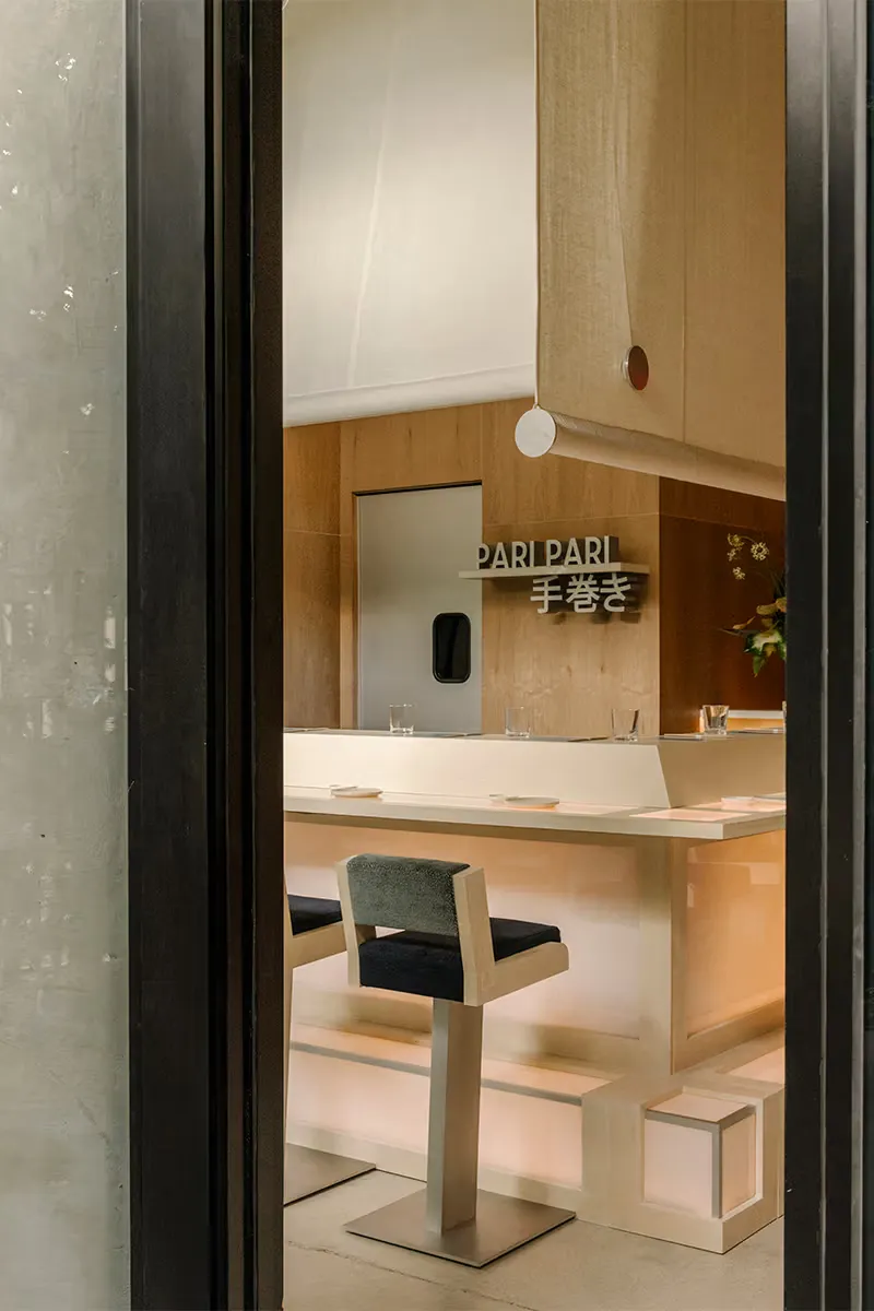 法国室内设计师 Rudy Guénaire 为迈阿密 Wynwood 区一间全新日式餐厅操刀,将整个空间围绕一座散发柔和光晕的吧枱展开。 新餐厅名为 Pari Pari,由日本籍米其林星级主厨 Yasu Tanaka 主理;因此,Guénaire 亦将日本建筑哲学融入其设计。 他说:「在日本,建筑长久以来更着眼于光线而非色彩或物料,而日本的光,向来关乎阴影。」又道:「另一边厢,迈阿密几乎就是阳光本身:无尽的白沙滩;当夕阳终于西沉,天际线在霓虹之下闪烁。」 部分受谷崎润一郎论日本美学的散文《阴翳礼赞》启发,Guénaire 以色彩与光线双线并行,塑造边缘柔和的场域。他补充:「我在这里想设计的是『光之礼赞』——作为对谷崎阴影冥思的对位,立于地球另一端。」 餐厅的核心是一张手卷吧枱,设计将其视作放大的日本行灯(「Andon」)。以美国枫木制作,日间散发如晨光般的柔光,入夜则映照出城市日落的余晖。 吧枱上方悬挂一幅大幅悬垂的布幔,呼应日本餐厅门面的暖帘(「Noren」)。这道厚实的簷幔为吧枱构筑视觉框景,师傅便在其中处理鱼材。 其余空间方面,Guénaire 尝试在传统与在地语汇之间调和:小巧的 Pari Pari 招牌向迈阿密 1930 年代酒店常见的立体标志致意;而带有海洋色调的高脚椅则依循日本木作榫接的纯粹法则(「Shiguchi」)制作,无需上胶组装。 详情可透过图集一览。 |