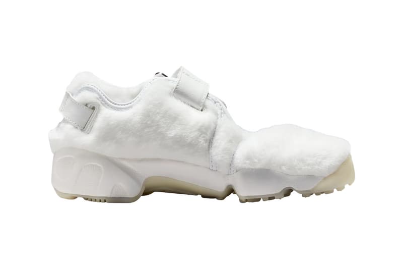 名称: Nike Air Rift「Culture Day 2025」 配色: Summit White/Metallic Silver 货号: IM6693-111 建议售价: 待定 发售日期: 2025 年 11 月 发售渠道: Nike Nike Air Rift 推出全新配色「Summit White/Metallic Silver」,庆祝日本 2025 年文化日。 这双即将登场的女装限定,以足袋风格鞋型包覆白色长毛绒,散发温暖气息;鞋面仅以少量皮革点缀,集中于内衬与扣带位置。鞋垫走「极繁主义」路线,混合 Nike 标志与鲜明图案;后跟束带则低调绣上单一 Nike 标志。 鞋款采用白色中底搭配浅色生胶感外底;中足与后跟束带配以金属配件,提供稳固贴合,中足处的一枚大型星形元素为造型点题。 |