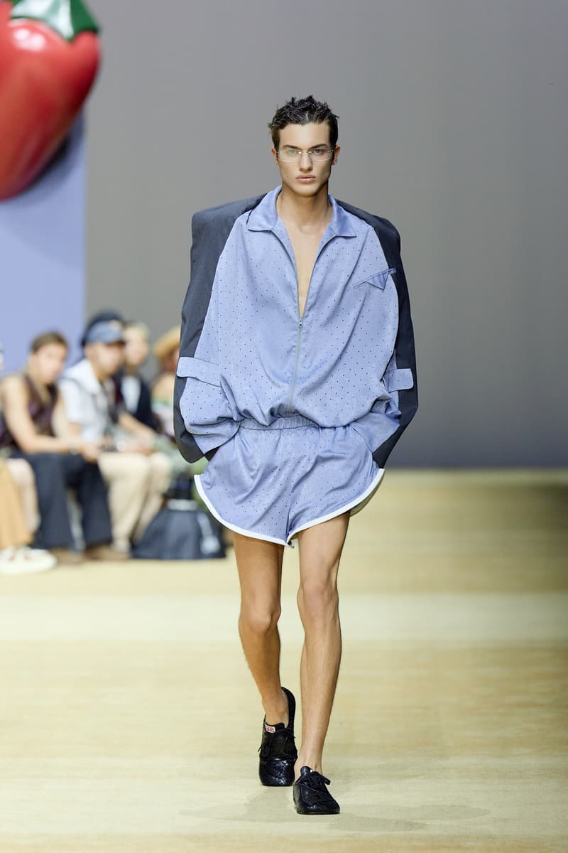 8ON8 稍早于上海时装周发布 2026 春夏系列「RUNNER THE DREAMER」,值此品牌 8 周年纪念,致敬一路奔跑的逐梦者,时代跌宕起伏却从未阻挡设计师龚力构建独属于 8ON8 的超现实理想主义世界。 本季融入城市路跑文化、传统手工压褶和编织工艺。龚力以超现实主义的视角诠释外收内放的城市运动者形象,将当代城市新中产内心对自然的向往和对追逐的渴望,用具体视觉热烈表达:流动的缩褶刺绣服饰、手工编织的皮质跑鞋展现出手工技艺与科技面料完美交融。大地色系的陶土红与 充满活力的霓虹色调碰撞出兼具松弛与动态感的轮廓,新鲜脱俗的民族手工艺与城市通勤风格的巧妙融和,传达出身处现实却神游四海的跳脱平衡。 将传统西装的里布和户外皮肤衣合二为一;端正的商务衬衫演变为A型剪裁,注入传统手工缩褶刺绣工艺;手工编织的皮质薄底跑鞋,日常随处可见的形象跳脱出现实的捆绑。手工编织的皮质薄底跑鞋,以精湛技艺突破常规束缚,寻常的跑步短裤亦被赋予崭新的生命律动,于步履起落间流泻出轻盈跃动的节奏;微微上扬的裤脚剪裁,不经意间勾勒出融合异域情愫与现代动感的审美线条。 为迎接即将到来的马年,8ON8 亦携手 KEEN 共同呈现限定鞋款。该款带来蔷薇粉,碧山绿两个配色,重塑 JASPER 系列的经典鞋型,麂皮鞋身通体拼贴皮革质地的飞马图案,后跟设计马尾似的流苏,整双鞋生动浮现飞马的灵动自如。 |