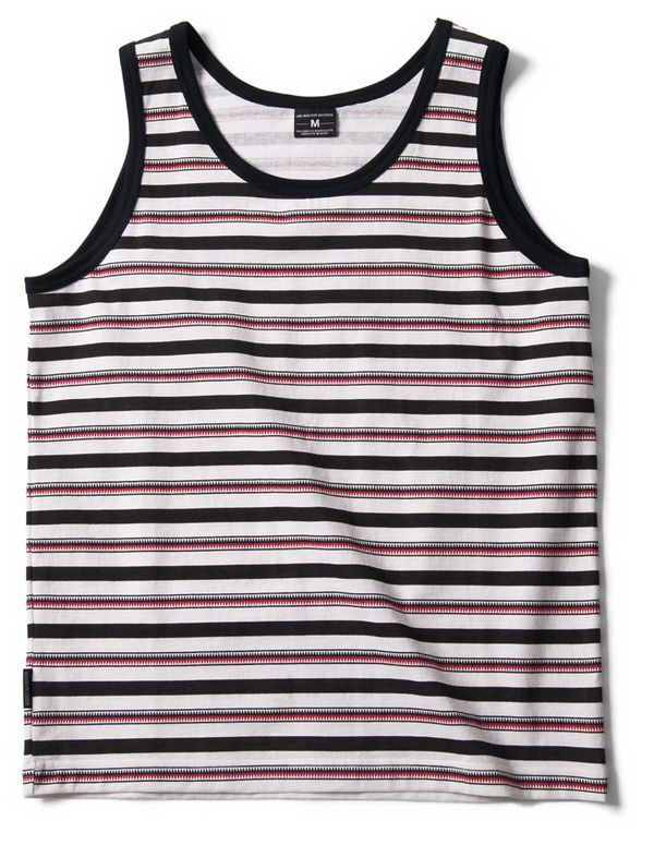 日本街头品牌BOUNTY HUNTER此番推出了2012夏季的6月份单品登场,其中最具有特色的即为鲨鱼齿状条纹系列商品,包括了背心、短Tee、相机绳与皮带等。而其它定番商品一如戒指与短裤等也都一如往常保有简单却于细节中暗藏特色等传统,令一众BOUNTY HUNTER粉丝们相信不会失望才是。 |