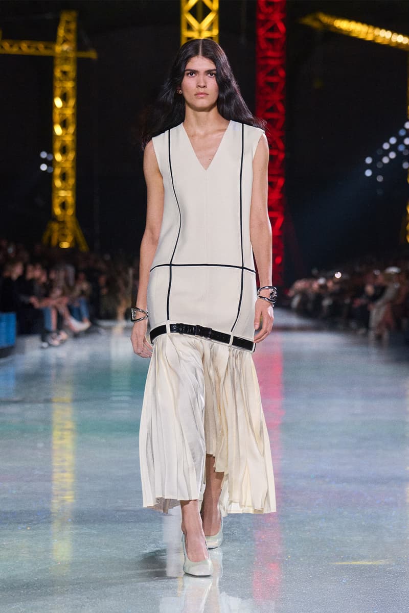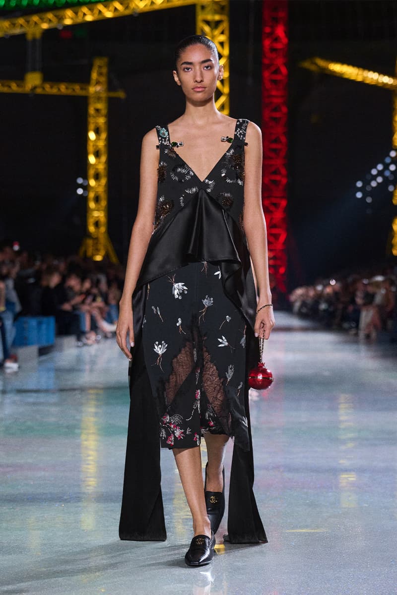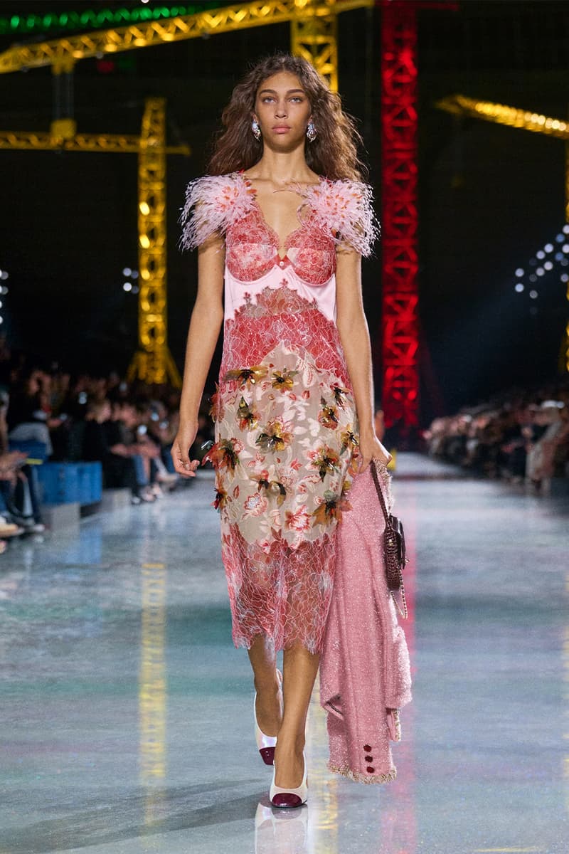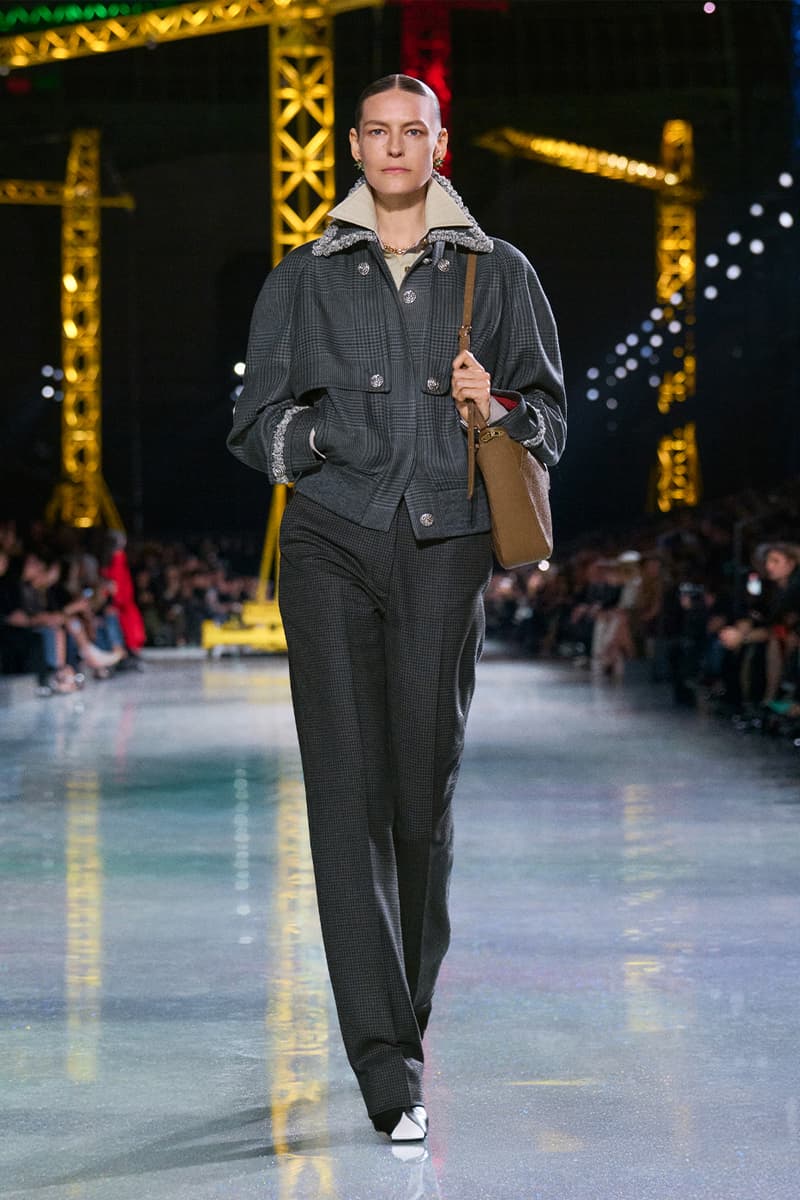 Matthieu Blazy 正式步入掌舵 Chanel 的节奏,而他最新一次的亮相清晰宣告:这家传奇巴黎时装屋,已在他的带领下迈向全新高峰。昏暗的大皇宫穹顶之下,缤纷起重机林立,Chanel 2026 秋冬大秀在此揭幕,化作一场关于「蜕变」的高超演绎。作为他接手后的第二个成衣系列,这位创意总监直接汲取 Gabrielle 「Coco」Chanel 的信条——时装应同时拥抱实用与幻想——优雅勾勒出一只脚踏实地的毛毛虫,如何蜕变成夜色中璀璨的蝴蝶。 FW26 系列的概念支点,是对 Chanel 女性内在悖论的凝练:理性却充满诱惑,于昼夜之间游走。「时装既是毛毛虫,也是蝴蝶。」Blazy 援引品牌创始人的名言,「我们需要会匍匐的裙装,也需要会飞翔的裙装。」为呼应这一理念,秀场以刻意克制开篇——脚踏实地、极具纪律感的日装占据 C 位:黑色针织拉链夹克、方正廓形的 overshirt 外搭、线条利落的压纹粗花呢短夹克轮番登场。Blazy 将标志性的 Chanel 套装重新想象为一块柔韧、当代的创作画布,推出更松弛的 twinset 组合,并加入品牌标志性的“work shirt” 工装衬衫,随性不束进下装,叠穿在经典夹克之下。 随着系列推进,最具张力的变化来自对比例结构的彻底重置。Blazy 大幅下移腰线,将腰带随意系在大腿中部,百褶裙摆则垂坠到远低于传统剪裁线的位置。由此勾勒出的全新廓形,仿佛是 1920 年代 flapper 女郎优雅风姿的当代翻译,经由现代日常视角滤镜后,显得更为松弛自在。 而当白昼渐次步入夜幕,整场秀在一片毫不收敛的虹彩光辉中全面炸裂。仿佛化身为隐喻中的蝴蝶,晚装章节呈现出近乎高级定制水准的惊艳工艺:耀目的亮片格纹套装、缀满珠饰并以星图刺绣流光溢彩的大衣,以及以金属网布编织出经典粗花呢纹理的造型,彻底接管了伸展台。成片绽放的立体布艺花朵、顺势拖曳的飘带与细腻的蕾丝贴花,将服装化作流动而充满张力的艺术装置,逼迫所有视线为之停驻。 为了让这场蜕变更加完整,配饰与妆容则一脚踏入奇幻领域。模特们梳起醒目的银色发髻,叠加厚涂闪片与淡彩假发,与那一双双马卡龙色、如第二层肌肤般贴合的小尖头拼色长靴默契呼应。皮具同样玩味十足:一只米色麂皮翻盖包,灵感源自 Gabrielle Chanel 传奇 Rue Cambon 公寓沙发上的 matelassé 菱格软包工艺,身旁则点缀一只奢华耀眼、泛着虹彩光泽的石榴造型 minaudière 盒子包。 在日常实用与张扬华丽之间搭起桥梁,Matthieu Blazy 为 Chanel 的未来勾勒出一个既诗意又雄心勃勃的蓝图。FW26 系列无疑证明,这家历史悠久的时装屋仍在持续构筑、不断进化,而更重要的是——它已蓄势待发,准备再度振翅高飞。 |