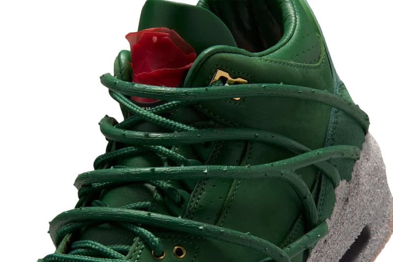 名称: Teyana Taylor x Air Jordan 3「Concrete Rose」 配色: Fir/Gorge Green-Cement Grey-Fire Red SKU: IF3097-300 建议零售价: $280 USD 发售日期: 2026 年 3 月 14 日 贩售通路: Nike Teyana Taylor 与 Jordan Brand 正式准备让最新联名企划「迎来绽放时刻」。这双鞋款早于洛杉矶 NBA 全明星周末首度曝光,并在 Taylor 的「No Thorns, No Rose」主题活动中亮相,如今 Nike 终于发布 Teyana Taylor x Air Jordan 3「Concrete Rose」的官方图集。承接她过往鞋履创作所累积的巨大声势,此次新作将其标志性的花卉主题再度升华,打造成一双工艺细腻、象征意涵深刻的代表之作,致敬她从 Harlem 街头一路蜕变为全球创意力量的历程。 「Concrete Rose」Air Jordan 3 堪称视觉对比与高端工艺的示范之作。跳脱传统色块分布结构,鞋身以低调雾感的绿色皮革包覆,营造稳重且极具搭配性的气质。这抹沉稳绿色与粗犷、具仿混凝土质感的中底相互呼应,优雅诠释在巨大压力之下孕育而生的坚韧力量。 在保留经典 Air Jordan 3 鞋型的前提下,Taylor 并未以张扬设计喧宾夺主,而是透过细腻讲究的细节,静静强化她所传递的激励主题。鞋款注入低调的玫瑰灵感点缀与奢华金属金色细节,令整体层次更显丰富。将鞋身翻至后方,标志性的 Nike Air 标志醒目坐落于鞋跟,让大胆设计依然扎根于 Jordan Brand 的原初传承。 一如所有由 Teyana Taylor 主导的企划,故事性远不止于表面。鞋内衬点缀手写字样,包括「The World Is Different Here」与「Rose From Concrete」,直接呼应此次联名背后带有强烈个人色彩的讯息。进一步放大花卉意象,鞋垫内侧铺陈繁复细致的玫瑰花瓣图腾,让每一步都延续主题叙事。 为了完整呈现高级体验,鞋款搭配特别版包装,将整体叙事自然延伸至开箱一刻。订制金色 Jordan 品牌鞋盒设有独特开窗设计,内嵌玫瑰图案展示,盒内亦以呼应主题的精美插画点缀。Teyana Taylor x Air Jordan 3「Concrete Rose」将于 2026 年 3 月 14 日正式发售,并登陆 Nike.com 及全球指定零售店。 |