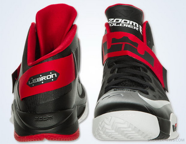 小皇帝LeBron James在今年奥运早些即已穿过最新的Nike个人代言系列Zoom Soldier VI在场边亮相,虽然这次伦敦奥运他选择穿着Nike最新科技旗舰篮球鞋Lunar Hyperdunk+上战场为了国家荣誉拼战,但在2008年北京奥运就曾穿上"United We Rise"美国队配色Zoom LeBron Soldier鞋款与Kobe联手击败各国好手为国夺下金牌,造成此款代言支线鞋款成为球迷们瞩目的焦点,这次Nike则释出了一款新色,以LeBron James所属的迈阿密热火队之客场黑红配色为设计,同样配以Hyper热压融科技无缝鞋面,搭载ZOOM AIR气垫避震系统,来提供篮球运动员最佳的穿着舒适性,感兴趣的朋友们敬请密切注意。  |