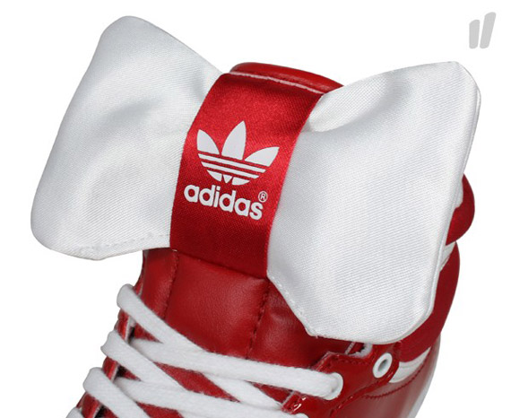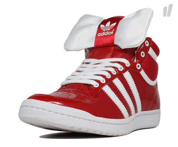 Jeremy Scott大胆夸张的设计风格总是带给人惊喜,由其是在鞋款鞋舌上的设计真是千变万化,而且还相当畅销受到大家的欢迎,adidas Originals因为有着前车之鉴,此番以早期80年代的篮球鞋作为设计号召,鞋面素材採用光泽度的火红色亮皮面料制成,经典的三线条纹再以白色当做陪衬,其最吸引人之处在于,莫过于其长型鞋舌上装置着那一个活泼俏皮的领结,让人感到十分新鲜有趣,除了鞋款的造型相当独特外也提供了篮球鞋舒适的脚感,感兴趣的女性朋友不妨参考一番。 |