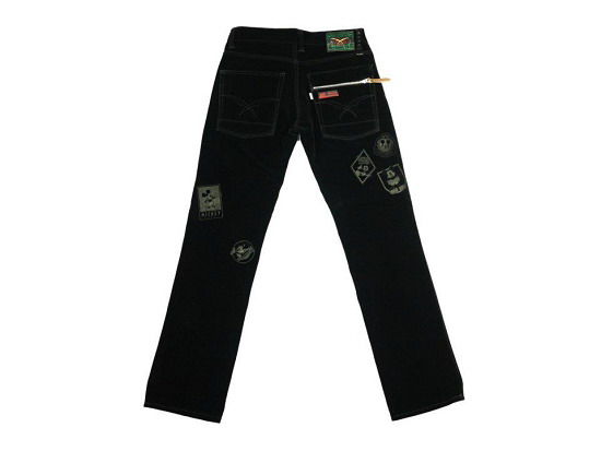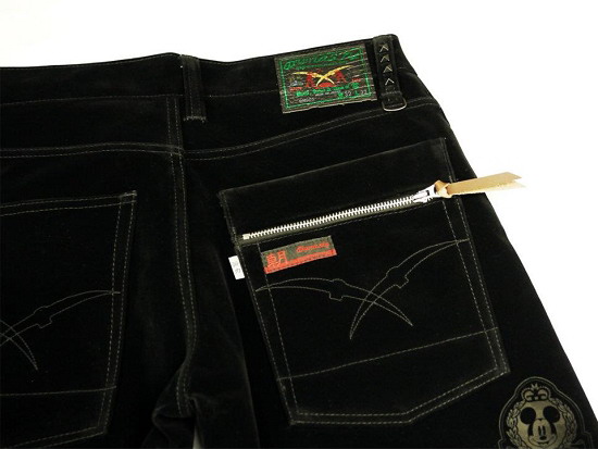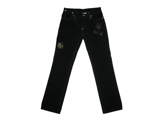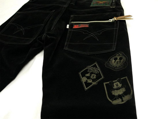 CLOT 自家丹宁系列DYNAST早前推出Mad Hatter Flocky Stripe Denim,赋予丹宁全新定位,今周将推出全新作品CLOT DYNASTY 米奇绅士丹宁裤款,以绒布为题,并与米奇连手,省略灰色条纹,改以雷射技术在深黑布料上印制各式米奇布章。正反两面布章位置、形状与米奇图案的搭配调和,显现出CLOT整体设计与细节。