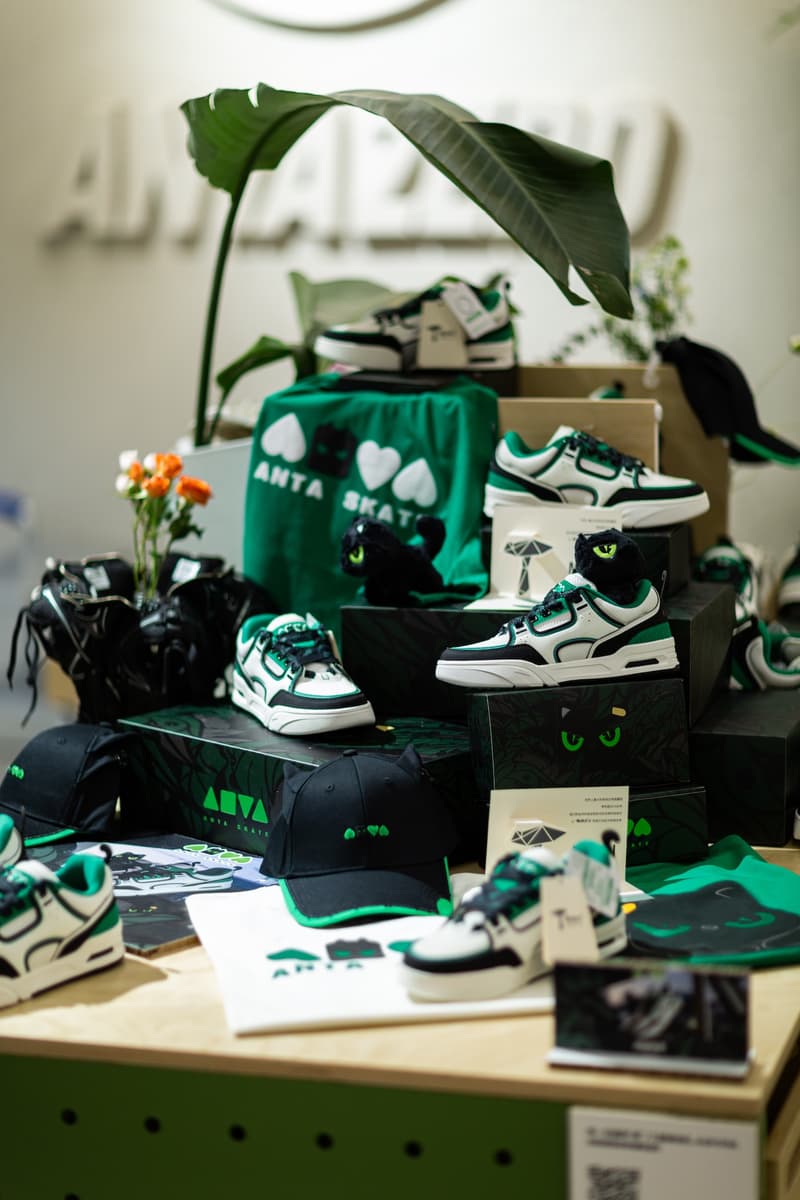 值此安踏与品牌全球首席代言人王一博携手四周年之际,安踏以王一博经典「黑豹」舞蹈为灵感,推出安踏骜杰 – 四周年特殊配色滑板鞋。由于鞋款的环保属性,本次特别发售活动选择于中国鞋服行业首家由权威机构认证的碳中和店铺——ANTAZERO 安踏 0 碳使命店进行。骜杰-四周年特殊配色滑板鞋是安踏首次采用 Mulkol 环保革料的鞋款。该材料由菌株发酵形成底基,通过特殊工艺实现减碳效果,助力生态环境保护。此次四周年款在设计上以黑白绿为主色调,搭配夜光纹路与丛林纹理压印,让鞋款整体充满层次感。环保的同时在细节处也暗藏惊喜,让穿搭随心而变。 活动现场实景还原菌丝体生长过程,将菌丝体材质花盆、约 150 个试剂瓶的培育器皿等生态装置陈列于安踏 0 碳使命店之中,使顾客能够更直观了解菌丝体培养路径,丰富环保理念的趣味性,获得沉浸式互动体验,零距离感知安踏可持续理念。 |
