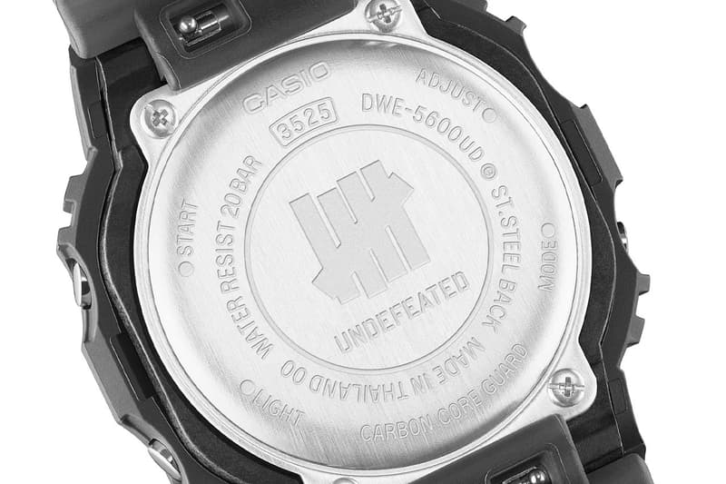 G-SHOCK 再度联手 UNDEFEATED 推出全新联名表款 DWE5600UD。此限量表款将于 5 月 9 日正式登场,结合 G-SHOCK 一贯的强悍耐用与 UNDEFEATED 的街头态度,展现兼具性能与风格的崭新设计。 DWE5600UD 搭载抢眼的绿色 LCD 荧幕,表壳选用黑色半透明设计,当红色 LED 背光亮起时,UNDEFEATED 标志性 Logo 随之浮现,以此细节呼应品牌识别。随表附赠三款可替换表带,其中两款为 UNDEFEATED 独家迷彩图腾:虎纹与风暴,让配戴者可自由混搭风格。 此外,该表款采用 G-SHOCK 标志性的 Carbon Core Guard 结构,具备 200 米防水与抗震功能,无论城市通勤或户外冒险皆可应对自如。整体包装也由 UNDEFEATED 设计,以黑色与迷彩主题呼应其美西街头文化血统。 DWE5600UD 售价 230 美元,将于 5 月 9 日 于 UNDEFEATED 各实体门市及线上通路抢先发售,并于 5 月 16 日 于 G-SHOCK Soho 与官方网站正式登场。 |