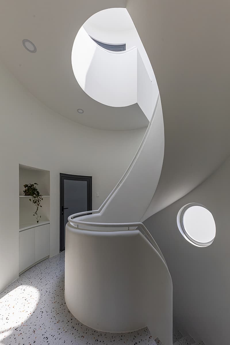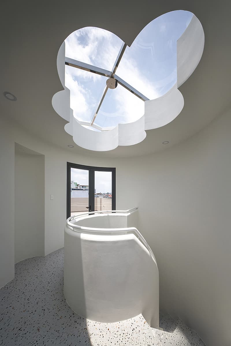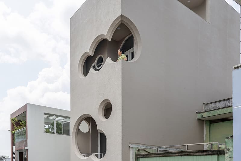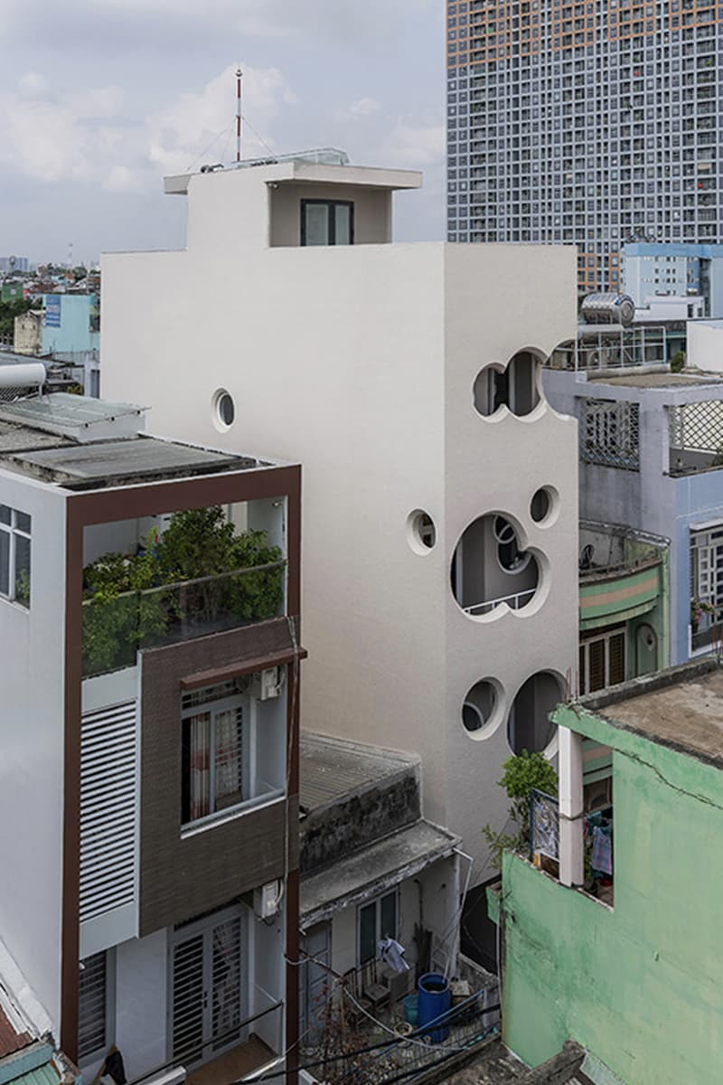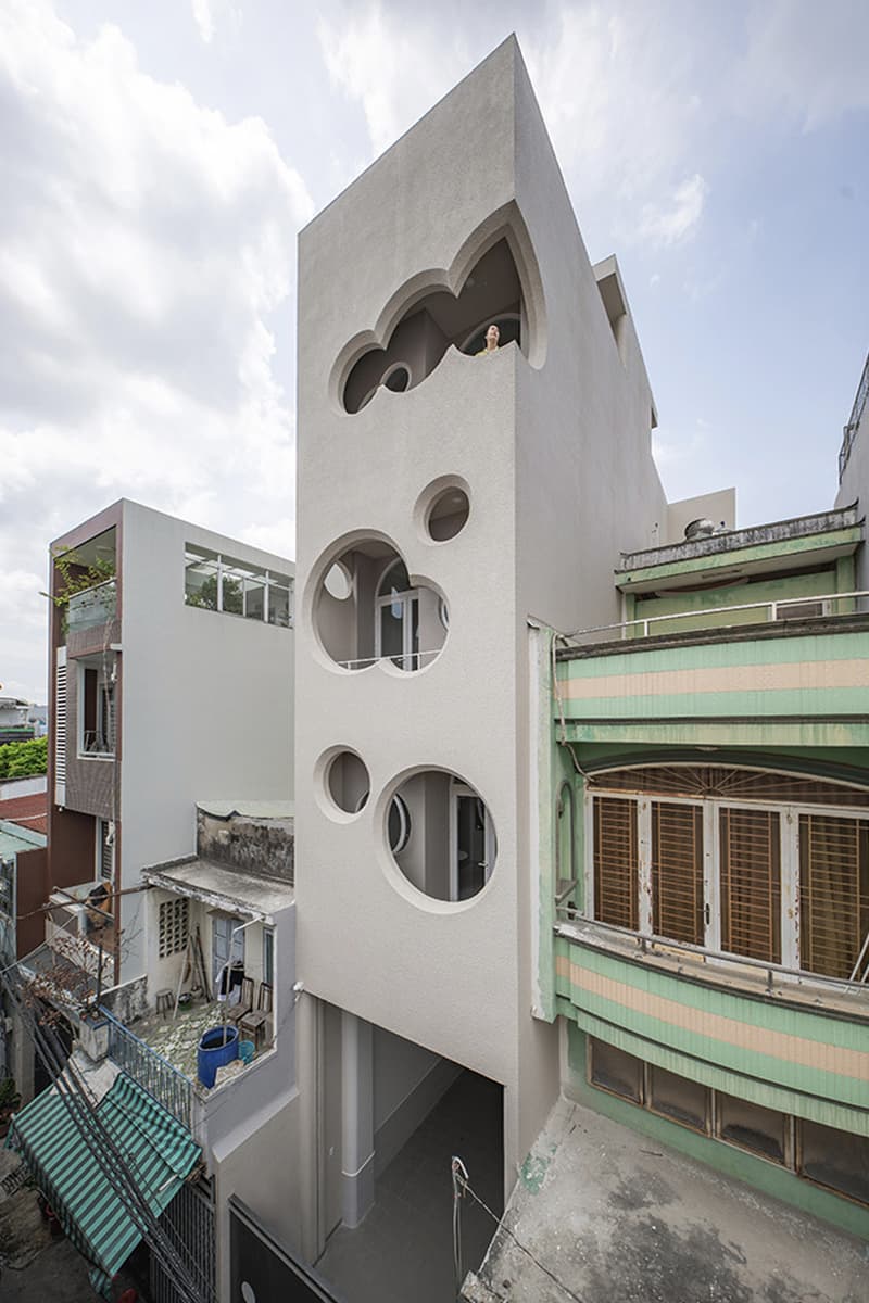 位于越南胡志明市密集市区的 Cloud House 是一座由 ROOM+ Design & Build 设计的精品共居项目。该建筑最引人注目的特点是其独特的设计,周围环绕着高低不一的联排别墅。其鲜明的外观不仅富有创意,还作为对城市住房成本上升的机能性回应。 为提升建筑的环境性能,设计融入多个圆形开口与云状造型,遍布立面与屋顶,呼应「Cloud House」之名。这些元素促进自然通风,让居住空间充满充足日光。 设计基于三大策略:阁楼式私人套房、多功能共用空间及自然元素的融入。Cloud House 包含六间阁楼式套房与两间标准工作室。每间阁楼套房在入口与浴室上方设置高架平台,充分利用 3.5 公尺的楼层高度,增加可用空间。室内采用中性材质与色调,搭配智慧设计的多功能家具,如座椅、衣柜与储物柜,与结构组件和谐整合。 此外,夹层的公共休息区与屋顶露台为共享设施,促进居民间的社区感。地面层与中央庭院则作为自行车与摩托车的专用停车场。建筑核心的螺旋楼梯不仅是主要流通路径,还促进居民互动。 |