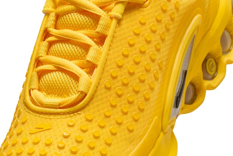 去年 Nike 与 LEGO 宣布合作打造「联名产品、内容与体验」,成为品牌一大亮点。如今,这场备受期待的联名终于揭开面纱,首款联名鞋款 Air Max Dn 以最新配色「Tour Yellow」亮相,专为儿童设计。 这款 Air Max Dn 鞋面采用鲜明的「Tour Yellow」色调,重塑 LEGO 积木颗粒的经典造型,充满趣味。鞋舌一改 Air Max Dn 惯常标志,换上 LEGO logo,鞋跟则融入联名标识,将三颗积木颗粒置于 Nike Swoosh 之上。鞋侧的两个 Air 气垫窗口饰有主题图案,搭配特别设计的包装盒,增添收藏价值。 目前 Nike 与 LEGO 尚未公布确切发售日期,但预计于今年 8 月透过 Nike 官网及指定零售商发售,仅提供童鞋尺寸,起价 155 美元。 |