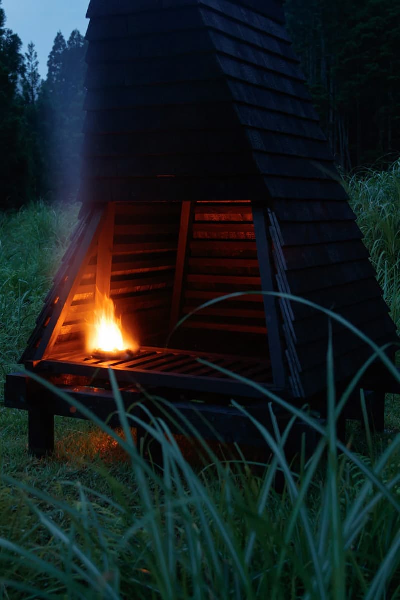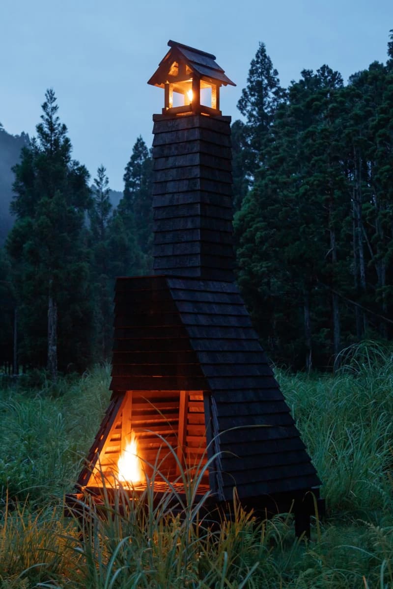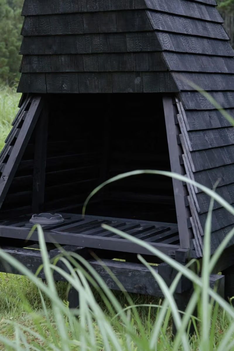 位于京都北部山区的茶亭 Le Picabier,由京都设计工作室 2m26 与巴黎事务所 Onomiau 合作完成,展现了日本传统工艺与当代建筑的巧妙融合。此项目由 Villa Kujoyama 委托,作为法国在日协会发起的创意驻留计划的一部分,为茶道文化注入全新诠释,并成为山林间的一处冥想式静谧空间。 Le Picabier 的外观以烟囱形设计为内核,并覆盖熏黑杉木瓦,向美国建筑师 John Hejduk 的抽象作品致敬,其造型兼具理性、诗意与奇异感。茶亭整体仅有 95.5 cm x 64 cm 的小巧占地面积,以传统榻榻米尺寸为基础,稍作缩小并擡升于木质基座之上,展现高密度空间的设计实力。 在这个仅供单人使用的私密空间中,迷你火炉提供煮水热源,结合巧妙倾斜的开口与烟囱设计来有效排散烟雾。建筑材料全部取自当地,其中桧木构筑内核结构与基座,外层则覆以熏黑处理的杉木瓦,形成强烈而和谐的视觉对比。内部木瓦涂有柿渋,一种以发酵柿子果实提炼的天然染料,不仅突出木材的质朴之美,亦具备防虫与防水功能,充分展现传统工艺的实用与美感。 建筑顶端的灯笼造型灵感来自日本传统神社,为茶道仪式增添象征意义。点燃蜡烛标志着仪式的开始,而火焰逐渐熄灭则意味结束,传递对无常的细腻诠释,同时深化感官体验。这些设计细节不仅延续了日本茶文化的精神,亦以现代语言重新演绎其内涵。 Le Picabier 不仅是一座茶亭,更是一处平衡简约、材质与空间意识的艺术作品。这座建筑在现代手法的演绎下,重新定义了传统茶文化,并成为京都山间的一处视觉与精神焦点。如果你热爱建筑、设计或日本茶道文化,Le Picabier 无疑是一个值得深入探索的静谧之地。 |