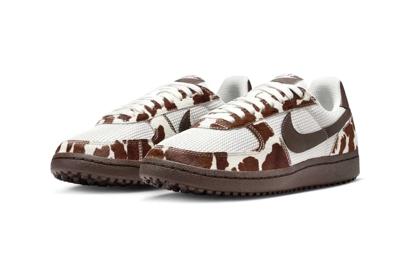 Nike 正式推出女性专属鞋款配色 Field General「Cow Print」,带领大家进入狂野西部。 Nike Field General「Cow Print」采用白色网眼鞋面,并在鞋头、鞋带孔眼和鞋跟处饰有棕白相间的牛纹绒毛覆盖层;棕色皮革 Swoosh 标志点缀于鞋侧,鞋跟与鞋舌标签上也有 Nike 品牌标志。最后,鞋款搭载棕色中底和带钉鞋底,并以白色鞋带系合,呈现简洁俐落的风格。 此鞋预计于 2025 年夏季正式发售,建议售价 $120 美元。 |