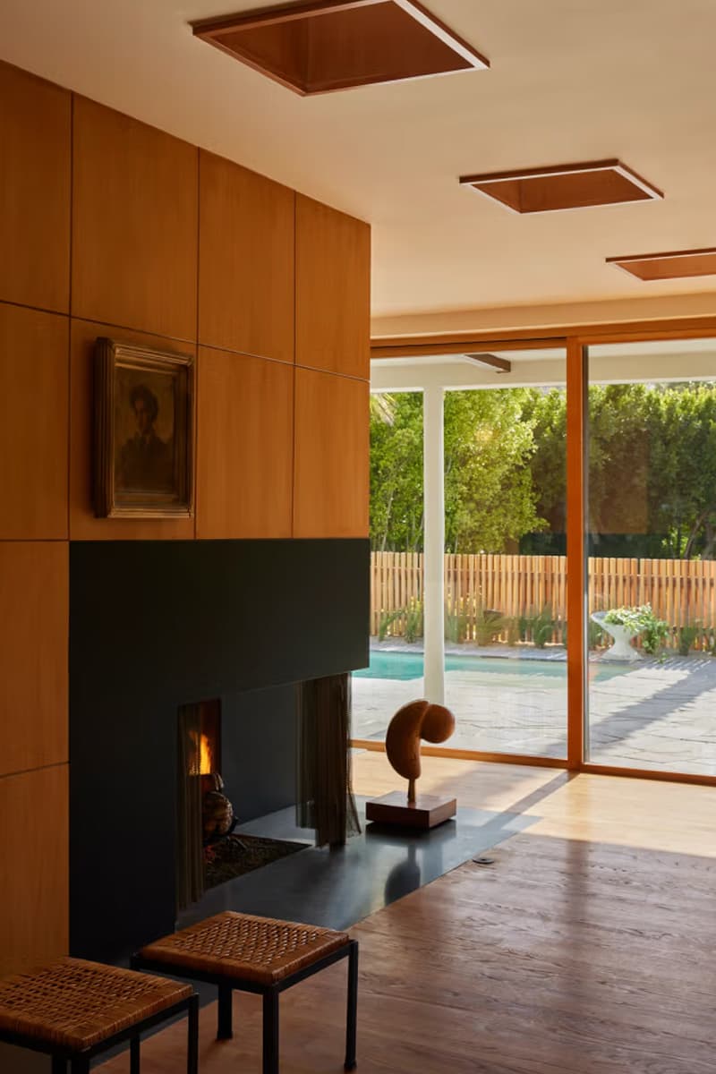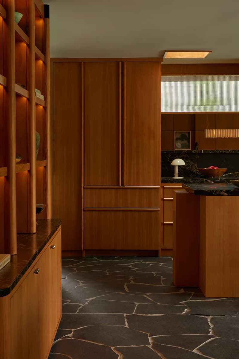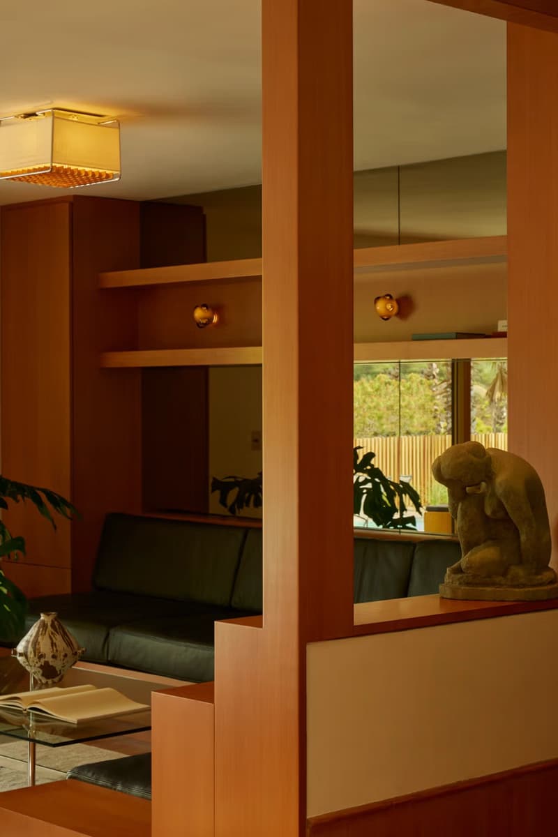位于洛杉矶 Laurel Canyon 山区的 CM G1 House,在设计工作室 Ome Dezin 的主导下,近日完成了一项惊艳的改造工程。这座建于 1960 年代的住宅,经过重新设计后,不仅强化了空间的流动性,更保留了其中世纪现代风格的根基,同时融入温暖材质与雕塑感造型,呈现出现代精致美学。 为向建筑的中世纪风格致敬,室内墙身铺设了大量的 Douglas fir 木质墙板,并搭配从入口延伸至厨房及书房的黑色旗石地板,营造出统一的视觉语言。 设计团队同时通过翻新角落壁炉,使其成为客厅的焦点,并增设天窗引入自然光线,而深色大理石台面则与温润的木作形成鲜明对比。 Willett 的订制家具在塑造空间氛围上扮演了内核角色,当中如 Radi Table、Gio Stool 及 Popo Chair 等单品,为住宅增添了大胆而和谐的艺术形态。而板条式正门、书桌及睡房的一体化储物系统等,均为特别订制,进一步强化了住宅的专属美学。这次合作,成功呈献了一个感觉宁静、清新且充满巧思的现代中世纪风格住宅。  |