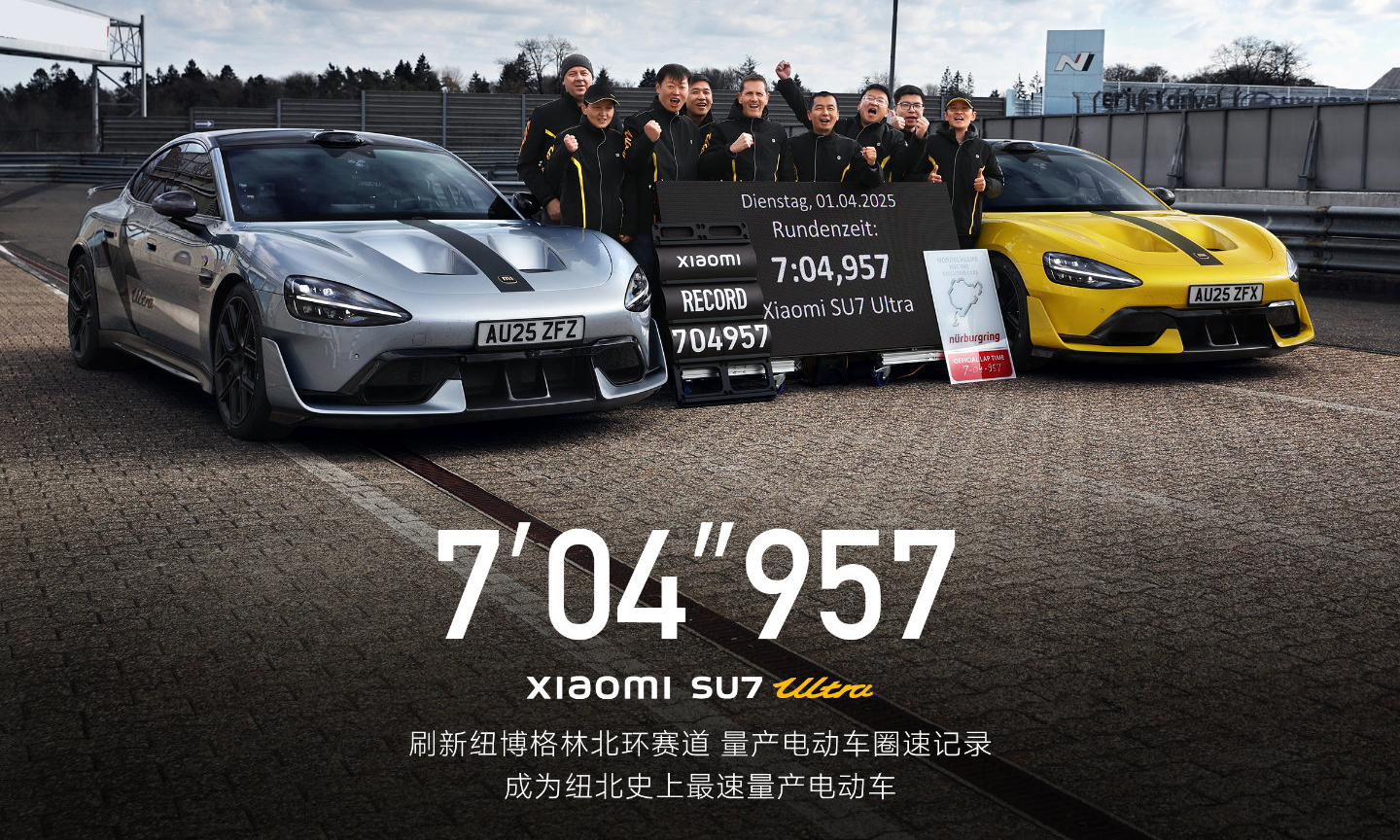 日前小米创办人雷军宣布小米 SU7 Ultra 量产版以 7 分 04 秒 957 的成绩,刷新纽伯格林北环赛道量产电动车圈速记录,成为纽北史上最速量产电动车。在完成纽北挑战后,小米将正式发售 SU7 Ultra 纽北限量版车型,售价为 81.49 万元。上周,小米 SU7 Ultra 量产版还被收录进《Gran Turismo 7》,成为这款诞生近三十年的殿堂级赛车游戏系列中,第一款来自中国的车型。