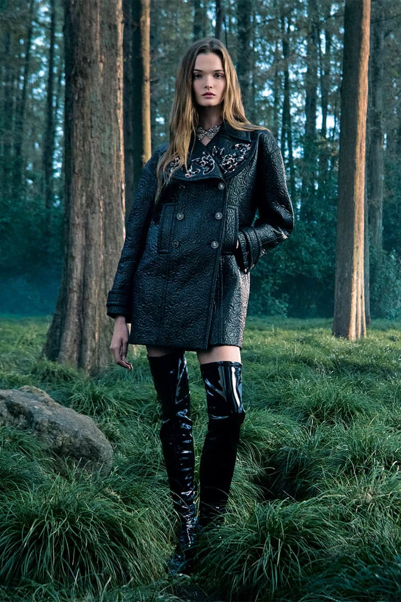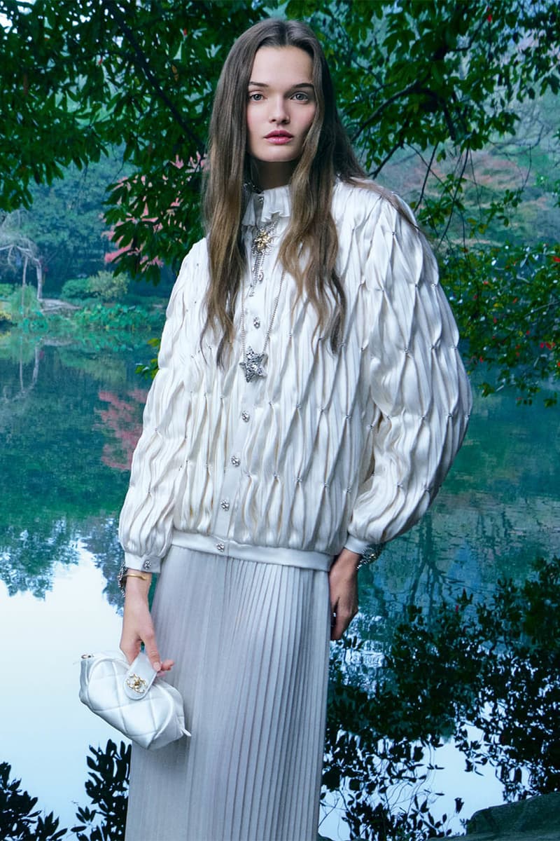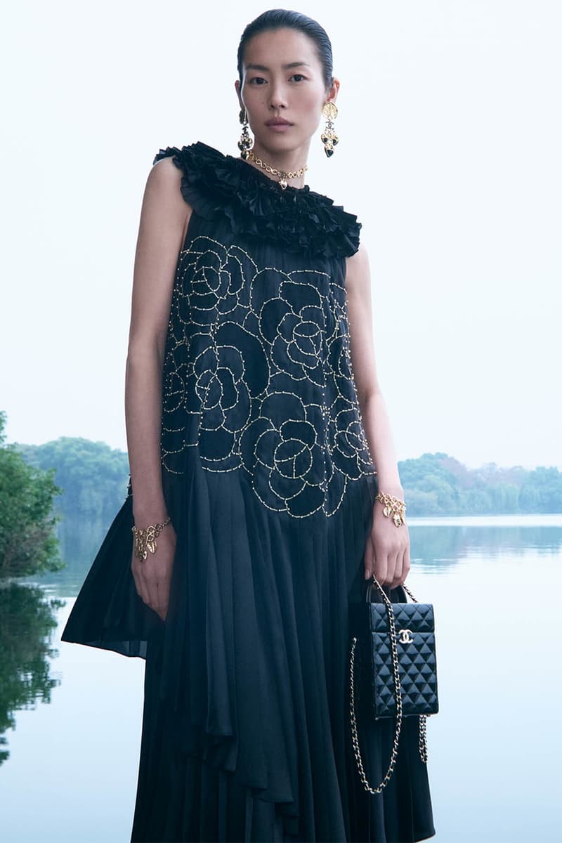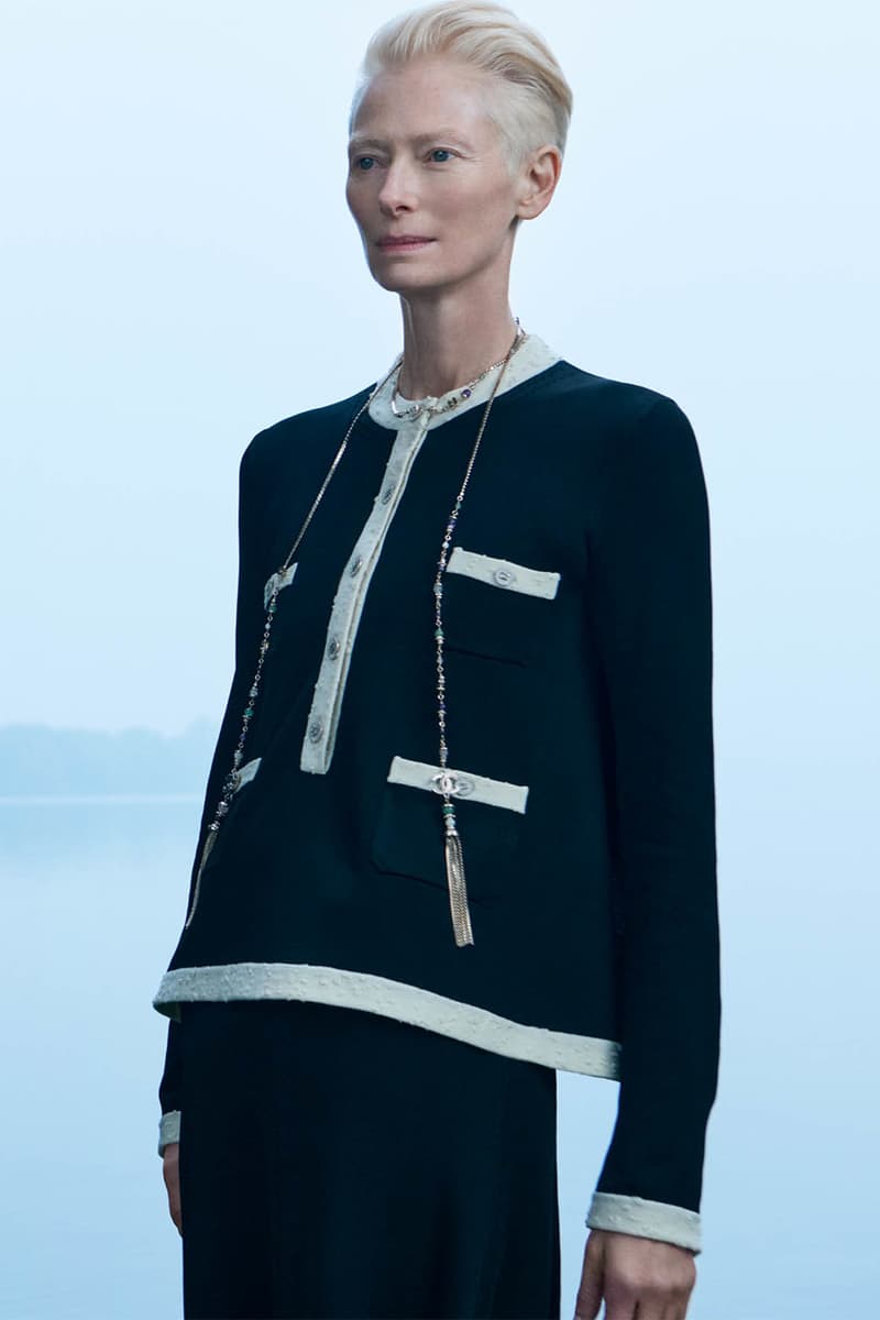 Chanel 正式发布 2024/25 Métiers d’art 工坊系列形象广告。 此系列是一段从巴黎到杭州的旅程,宛如行进间的梦境般。在 Gabrielle Chanel 位于康朋街 31 号的寓所中竖立着一面 19 世纪的乌木漆面屏风,漆艺面板上细腻刻划出杭州西湖的绝美景致,让想像力无限驰骋。2024 年 12 月,Métiers d’art 工坊系列大秀就在黄昏时分的西湖畔登场,而也正是在同一片朦胧的光影中,Mikael Jansson 拍摄了此系列的形象广告。 香奈儿品牌大使 Tilda Swinton、刘雯以及模特儿 Lulu Tenney 身着剪裁优雅修长、富含诗意的造型,打开一场跨越欧亚两洲与两个世代的对话。Lesage 工坊、Atelier Montex 工坊、Lemarié 工坊、Lognon 工坊、Massaro 工坊、Goossens 工坊、Maison Michel 工坊、Paloma 工坊等 Maisons d’art 高级手工坊携手挥洒精湛技艺,让褶饰如建筑结构般挺立,刺绣图案勾勒出生动的风景,珠宝则如繁星般绽放璀璨光芒。 层次深邃、近乎流动的黑色为形象广告奠定充满神秘魅力的基调,长版皮革外套搭配 Lemarié 工坊制作的山茶花胸针即是一例精彩诠释。刘雯身着饰有花卉刺绣图腾的黑色绉缎褶饰洋装完美演绎夜晚主题,搭配由 Lognon 工坊精心打造的波浪状荷叶领展现出独特精致工艺,勾勒出优雅起伏的线条。 晚宴服散发感性的魅力,一件配有腰带的缎面衬衫饰以丝绒蕾丝花朵,其轻透材质隐约显现出由 Lesage 工坊悉心绣制的内搭背心。Goossens 工坊精心制作的项链融合灰色、午夜蓝与复古金,营造熠熠星空的视觉效果。 清晨薄雾笼罩在一袭象牙白的褶饰丝缎外套上,搭配同样材质的长裤,呈现出流畅且闪耀的线条。Lognon 工坊的匠心工艺,为褶饰赋予透明轻盈的轮廓。另一套造型则是一件海军风双排扣大衣,领口点缀由 Atelier Montex 工坊绣制的图纹,下身搭配菱格纹楔型跟的黑色漆皮长靴。 黑白双色针织服饰与从乌木漆面屏风汲取灵感的图腾细节不仅呼应旅游主题,也为香奈儿经典双色开襟衫注入崭新风貌。而旅行的主题亦延伸至大尺寸菱格纹皮革旅行袋、漆皮化妆包款,以及全新的闪亮黑色斜纹软呢 CHANEL 25 包款之中。 从屏风延伸至湖光山色,将梦境化为轮廓造型,香奈儿品牌创造出一段想像与诗意交织的全新视觉探险之旅。 |