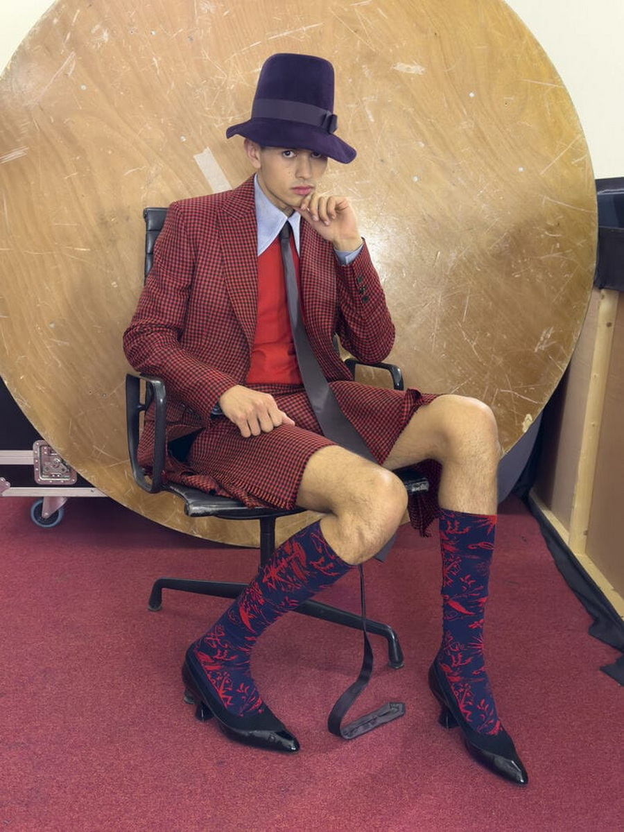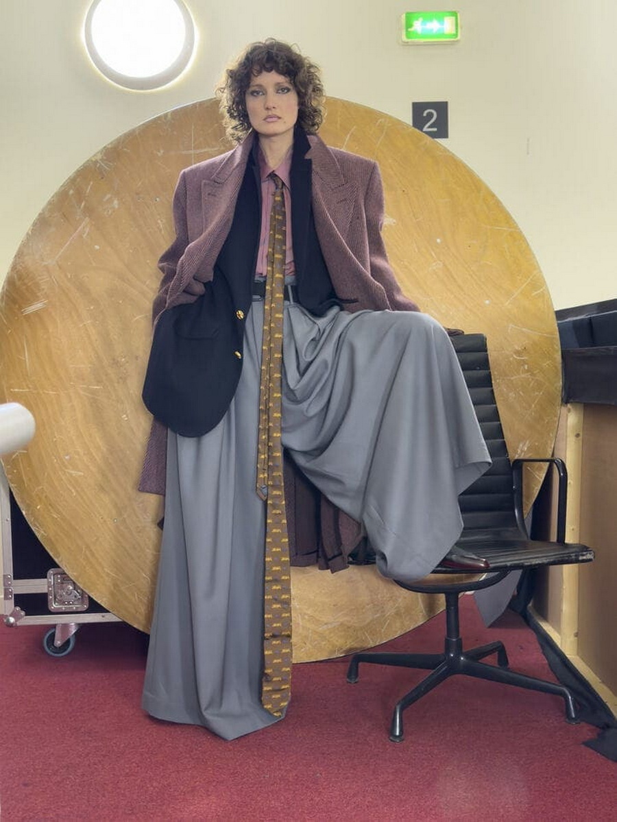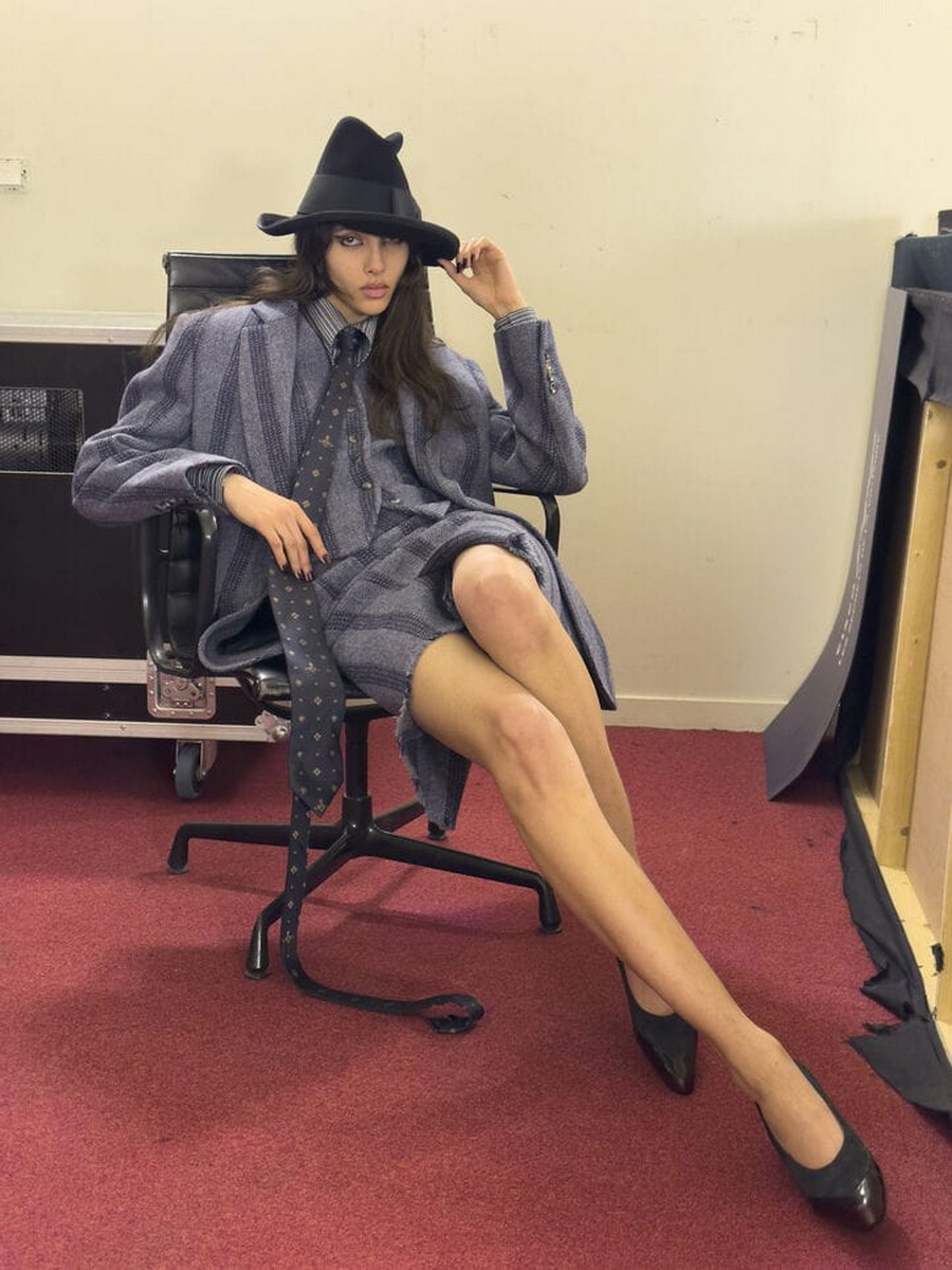 Vivienne Westwood 于巴黎时装秀结束后即刻拍摄的 2025/26 秋冬系列广告片,聚焦秀场后台那片尚未散去的混乱与张力。由 Andreas Kronthaler 掌舵创意、Juergen Teller 掌镜,模特阵容包括 Alton Mason、Yasmin Wijnaldum 等人。片场设于后台仓库,刮痕斑驳的木桌、旧办公椅与裸露器材,共同营造出一幕略显颓废却极具真实感的「舞台」。 该系列以苏格兰格纹、哈里斯粗花呢等英伦面料为基底,通过不对称、戏剧化的轮廓结构,向 Cary Grant、Brigitte Bardot 等文化偶像致意。镜头捕捉模特们刚走下秀台的倦态与情绪残影,记录下表演与现实交织的瞬间。Kronthaler 引用莎士比亚:「人生如戏」,而本季广告片,则将这句古语拍成了影像实录。 |