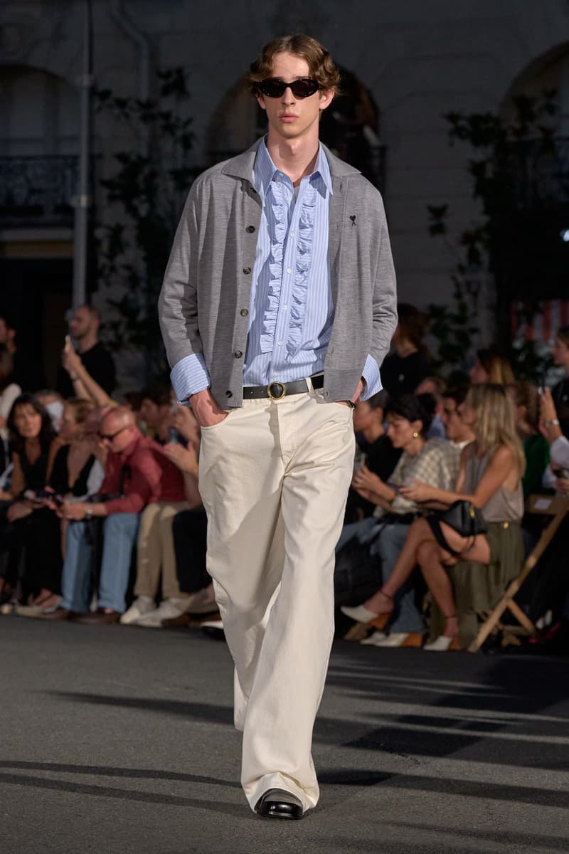 Ami Paris 稍早在其总部所在地巴黎胜利广场举办户外大秀,发布品牌 2026 春夏男女装系列。 系列以欢愉、色彩和自由为基调,在延续品牌标志性优雅格调的同时,通过丰富质感、缤纷色彩与多样造型,注入轻盈趣味。清新色调与中性色块交织,轻盈材质与大胆廓形碰撞,诠释现代不羁风格。本季延续打造完整衣橱和轻松愉悦着装风格的永恒理念,以工装风、宽松廓形剪裁与轻盈欧根纱、针织面料的混搭营造对比美感,打造兼具摩登活力与精致松弛的造型。 包袋与皮具部分推出全新颗粒皮革 Carrousel Homme 手袋,以更加硬朗的风格重新诠释,在原版的基础上增加了宽肩带和公文包式翻盖设计;而 Mimi 手袋推出迷你包款;Carrousel 女式手袋推出春夏新配色;Étienne 手袋推出搭扣开合的斜挎包款。全新夏季单品包括条纹沙滩编织包和饰有超大品牌标识的帆布托特包。 另外值得一提的是,后台工作人员与受邀观秀的品牌合作者们均身着为本次大秀特别设计的黑色T恤——正面饰有白色迷你 Ami de Cœur 标识,背面印有白色「Place des Victoires」字样。该纪念款 T-Shirt 现已在 Ami Paris 玛黑区旗舰店和品牌官网发售。 |